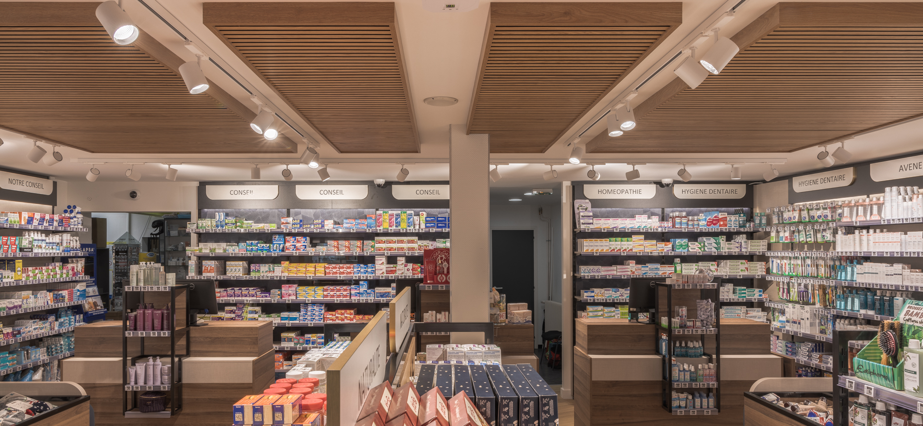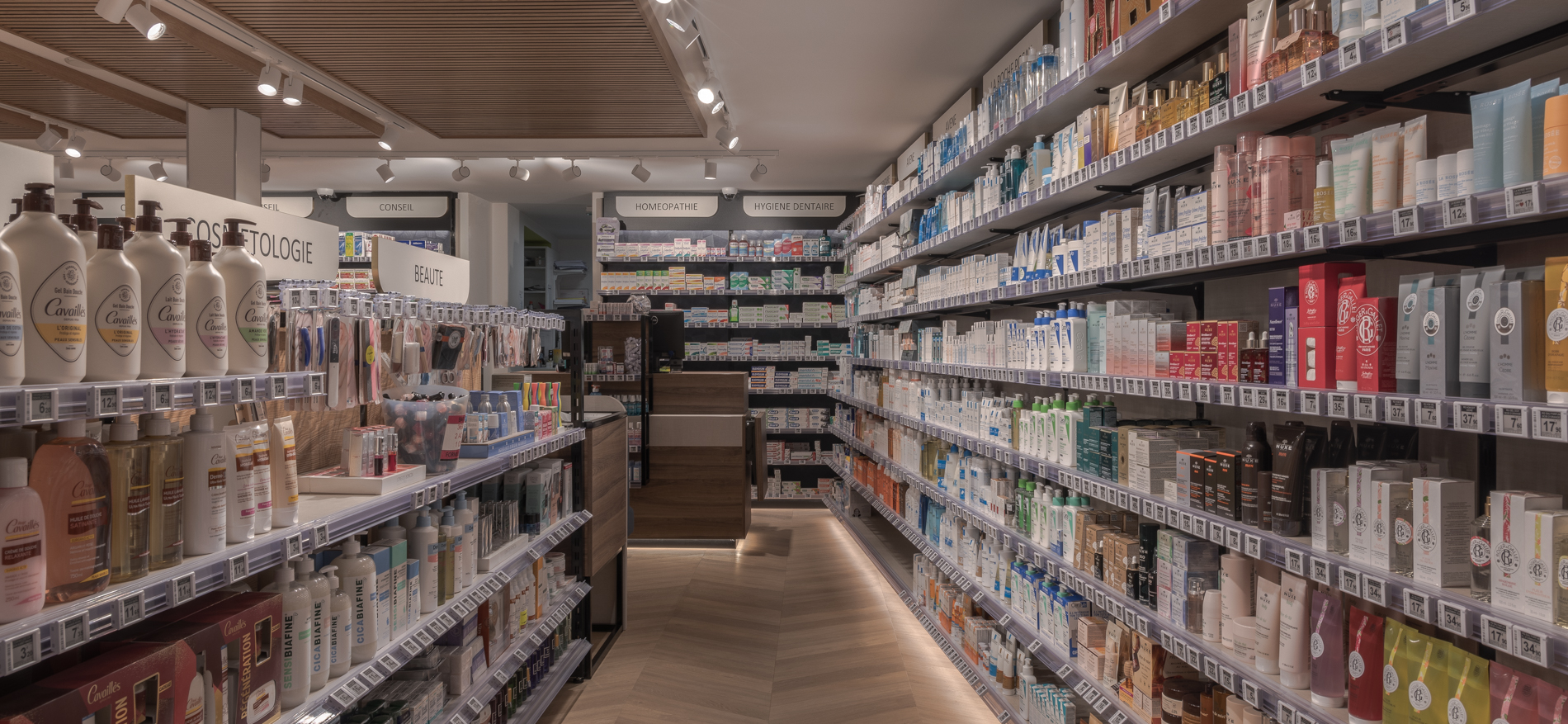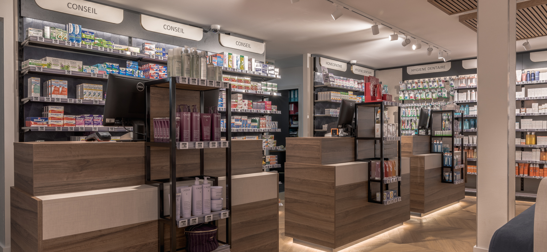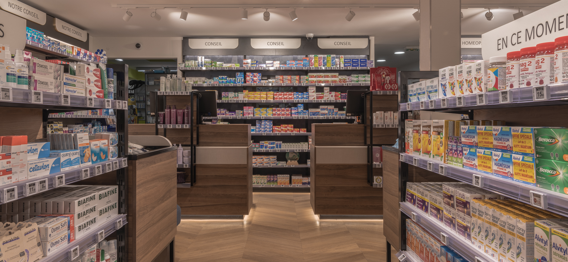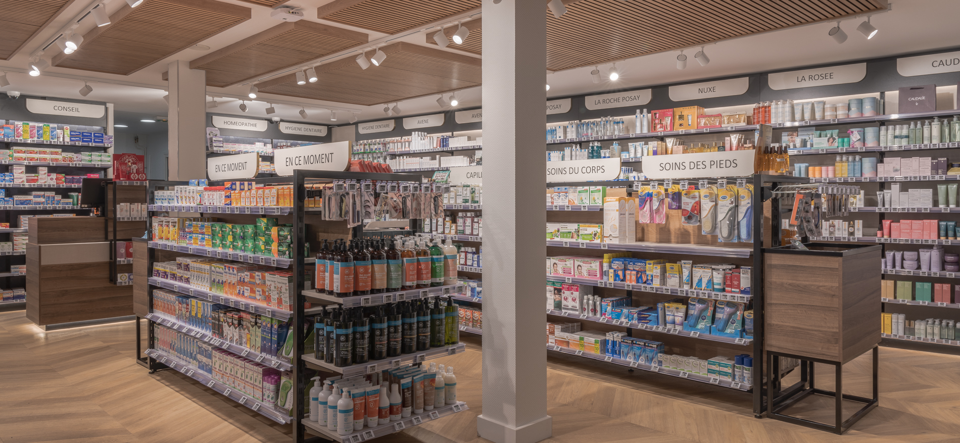 Winkelinrichting en ontwerp Apotheek Carton (FR)