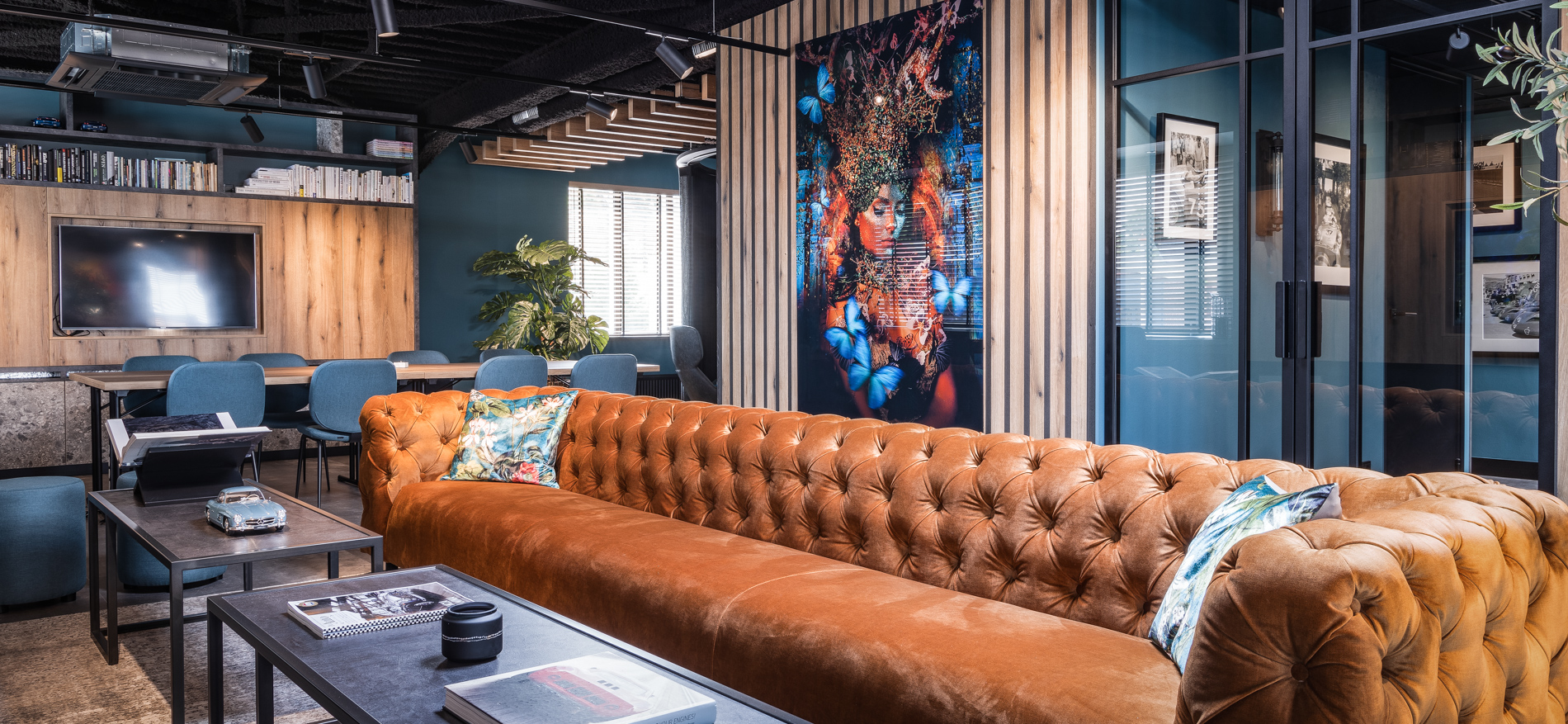 Een gezellige, eigentijdse, industriële kantoorinrichting