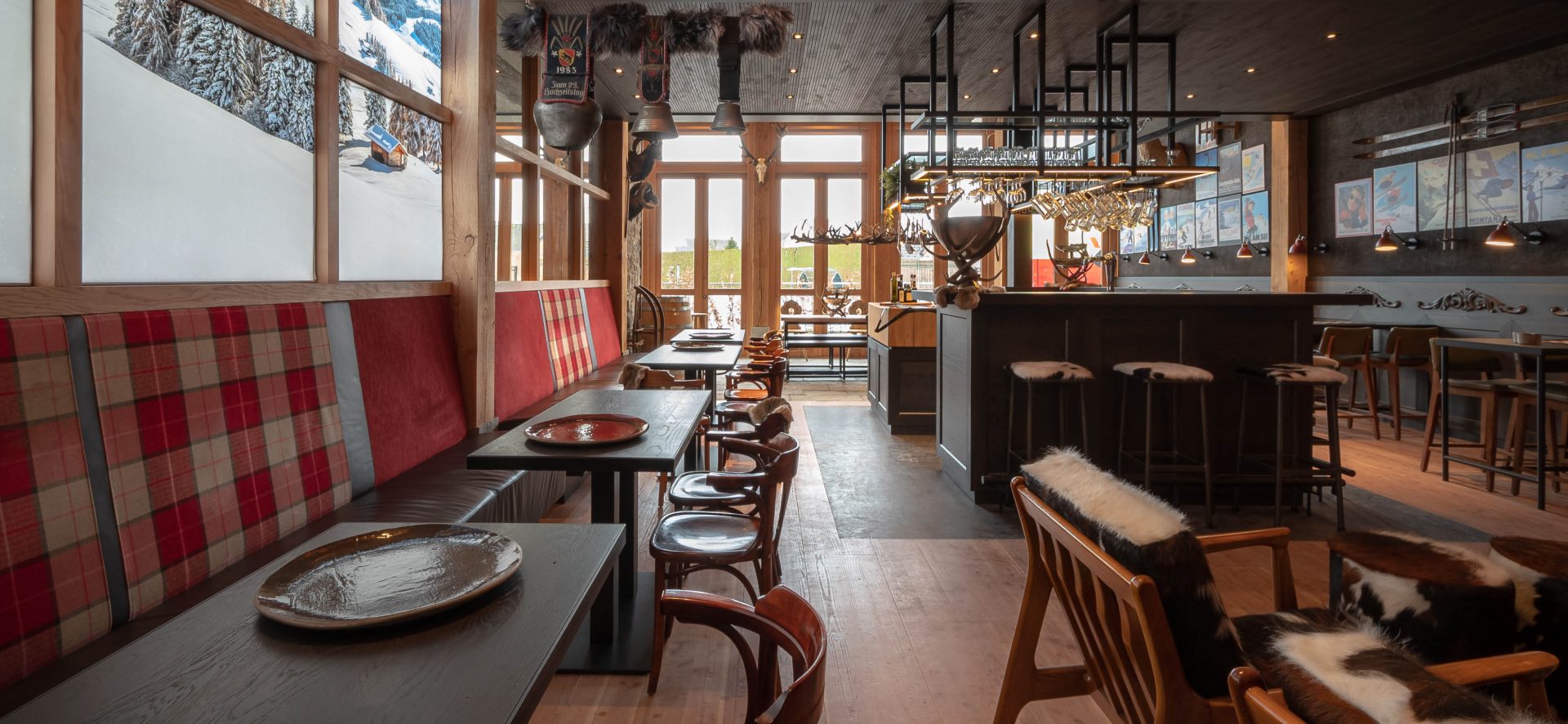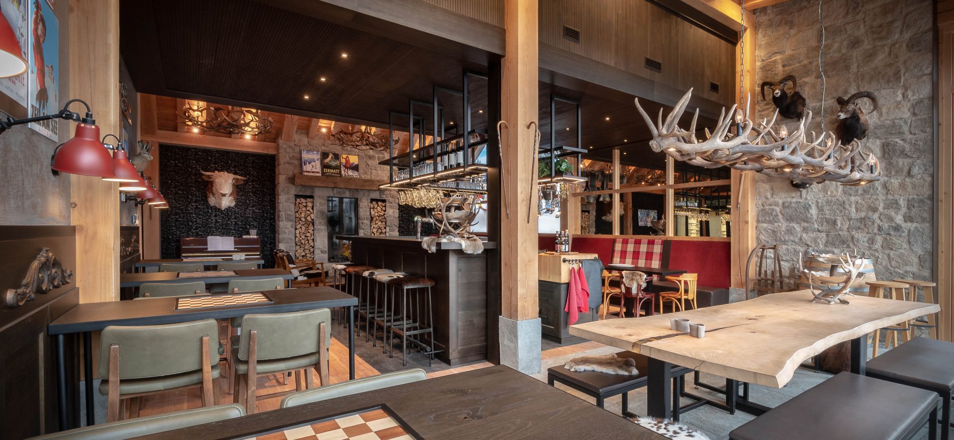 Decken und Böden aus rohem Douglasienholz sorgen für eine warme und gemütliche Atmosphäre. Wir haben auch Materialien wie Leder, Stahl, Wolle und noch mehr Holz verwendet. Alles ist in einer alpinen Atmosphäre gestaltet, mit Holzskiern, Vintage-Ski-Werbetafeln, Schweizer Kuhglocken und vielen Stofftieren in allen Formen und Größen (natürlich sind alle eines sanften natürlichen Todes gestorben). Alles in allem der perfekte Ort, um in jeder Pause mit dem Team zu entspannen oder sich Zeit für einen guten Drink zu nehmen. Harte Arbeit ist harte Entspannung!