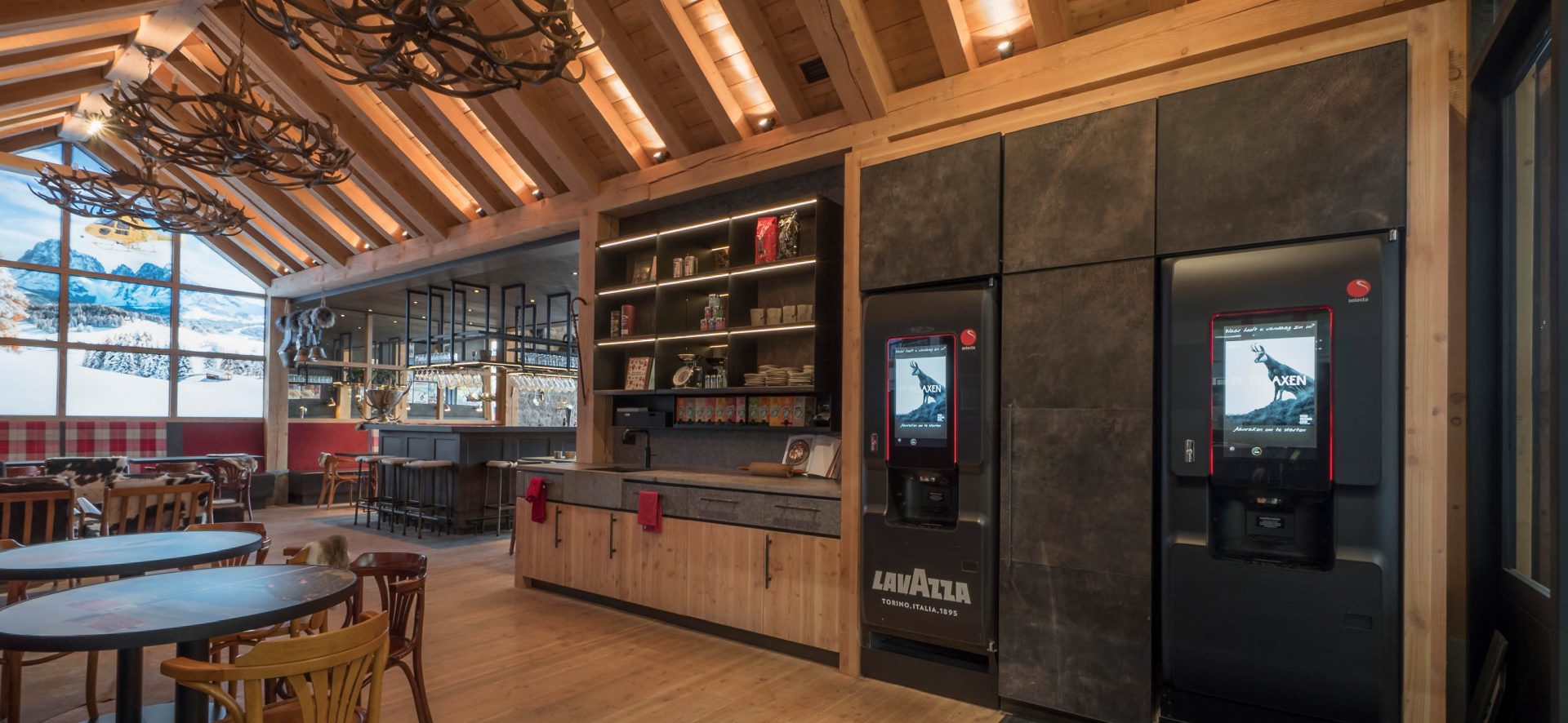 Als wir mit dem Umzug und der Inneneinrichtung der Kantine begannen, war die gewünschte Atmosphäre und Optik schnell klar. Eine Skihütte mit frischem Touch (im Sommer muss man dort schließlich auch gemütlich sitzen können), das musste es sein. Wir haben uns nicht zurückgehalten, wir haben uns für das Gesamtbild entschieden. Platz für zwei große Kaffeemaschinen in Kombination mit einer Küchenzeile sorgen für einen schnellen Pausenfluss. Keine „Kaffeestaus“ mehr zu Spitzenzeiten.