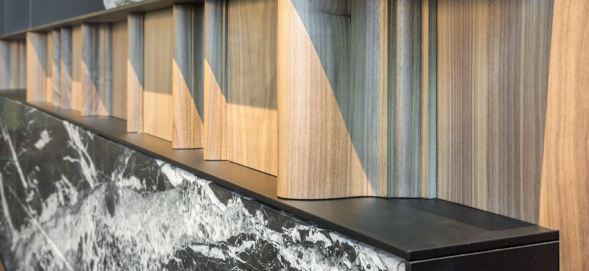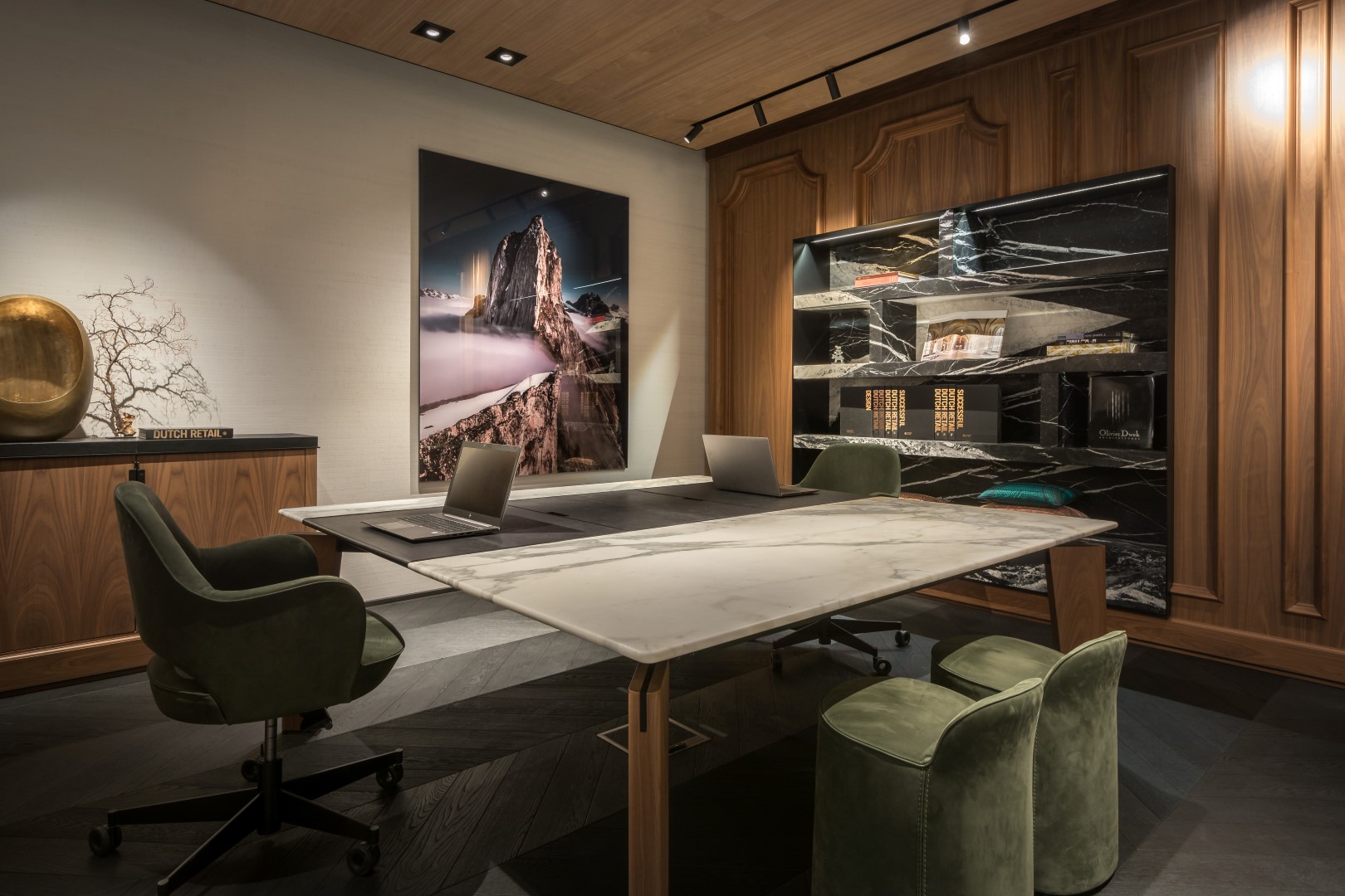 Was sehen Sie? Die Einrichtung des Empfangs und der Sitzungsräume WSB Ladenbau in Scherpenzeel. Einrichtung Rezeption und Empfangsräume sind 100% eigener Entwurf und wurden vollständig schlüsselfertig realisiert. Einrichtung Rezeption.