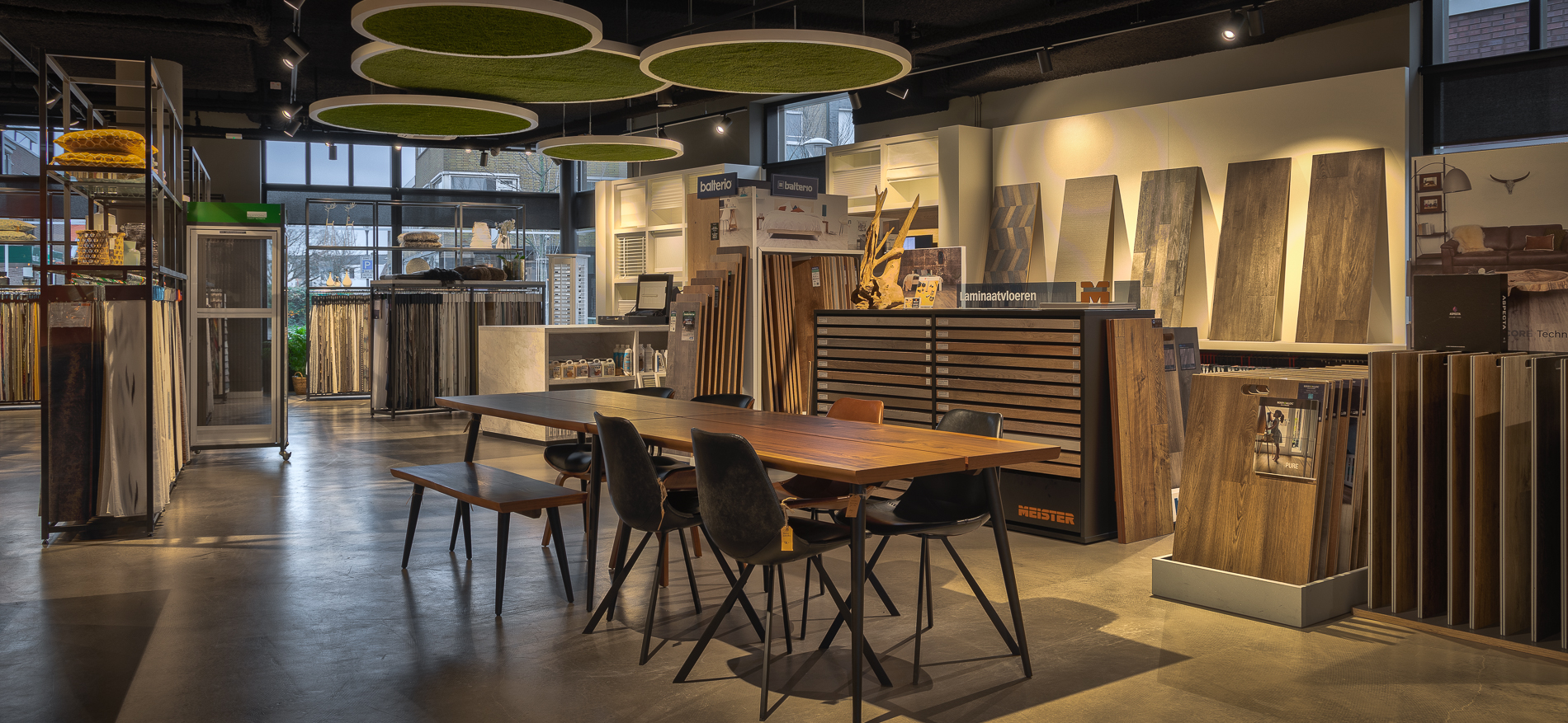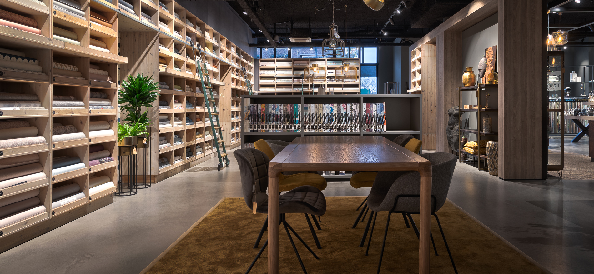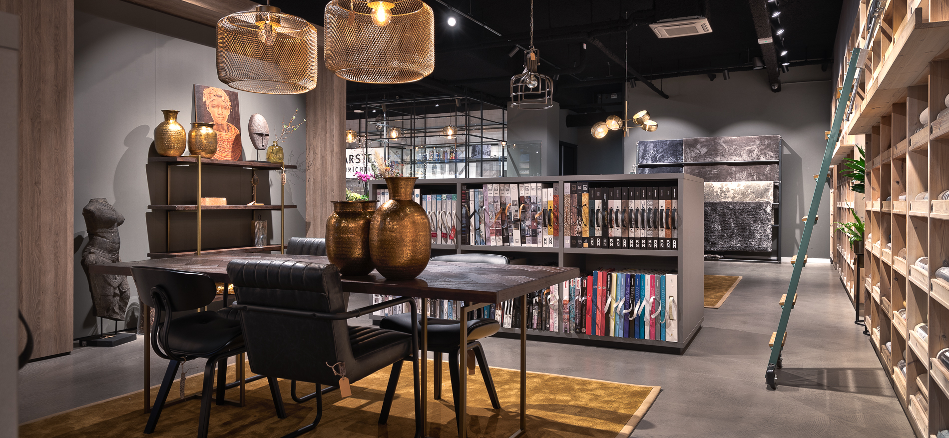 Für den Auftraggeber Piet Karsten Woninginrichting haben die Innenausstatter von WSB ein inspirationsreiches Ladenkonzept gezeichnet. Der Entwurf hat inspirierenden Charakter, wobei der Kunde zum längeren Verweilen, Genießen und zu eigenen Einfällen angeregt wird. Im weitesten Sinne des Wortes sind mehrere Zimmereinrichtungen zur Inspiration gestaltet worden, und auch der Empfang ist gleichzeitig fürstlich, gemütlich und – dank des Augenzwinkerns zum Gaststättengewerbe – sehr geschmackvoll. Das Erleben des Ambiente durch den Besucher soll letztendlich dem kommerziellen Erfolg der realisierten Lösungen und der verwendeten Materialien für die Wohnungseinrichtung dienen. Dabei geht es um Tische zum Präsentieren von Tapeten, Tapetenschränke, Möbel zum Zeigen von Vorhängen, um die Präsentation von Fußböden aus Naturstein, Fliesen, PVC und Parkett oder Fußbodenbelag, die Präsentation von Farbe sowie um Zimmereinrichtungen als Quelle der Inspiration.