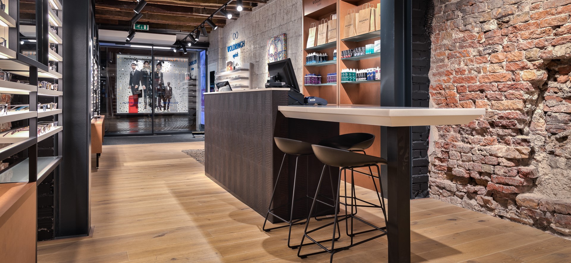 Nico Schreuder: “Mit dem Entwurf haben wir uns mit der Geschichte von Woldringh Optiek und den architektonischen Besonderheiten des Gebäudes beschäftigt. Das Design sieht modern aus, gleichzeitig sehen Sie den zeitlosen Charakter des Gebäudes. Die alten Steinwände und die puren Holzbalken sind charakteristisch.