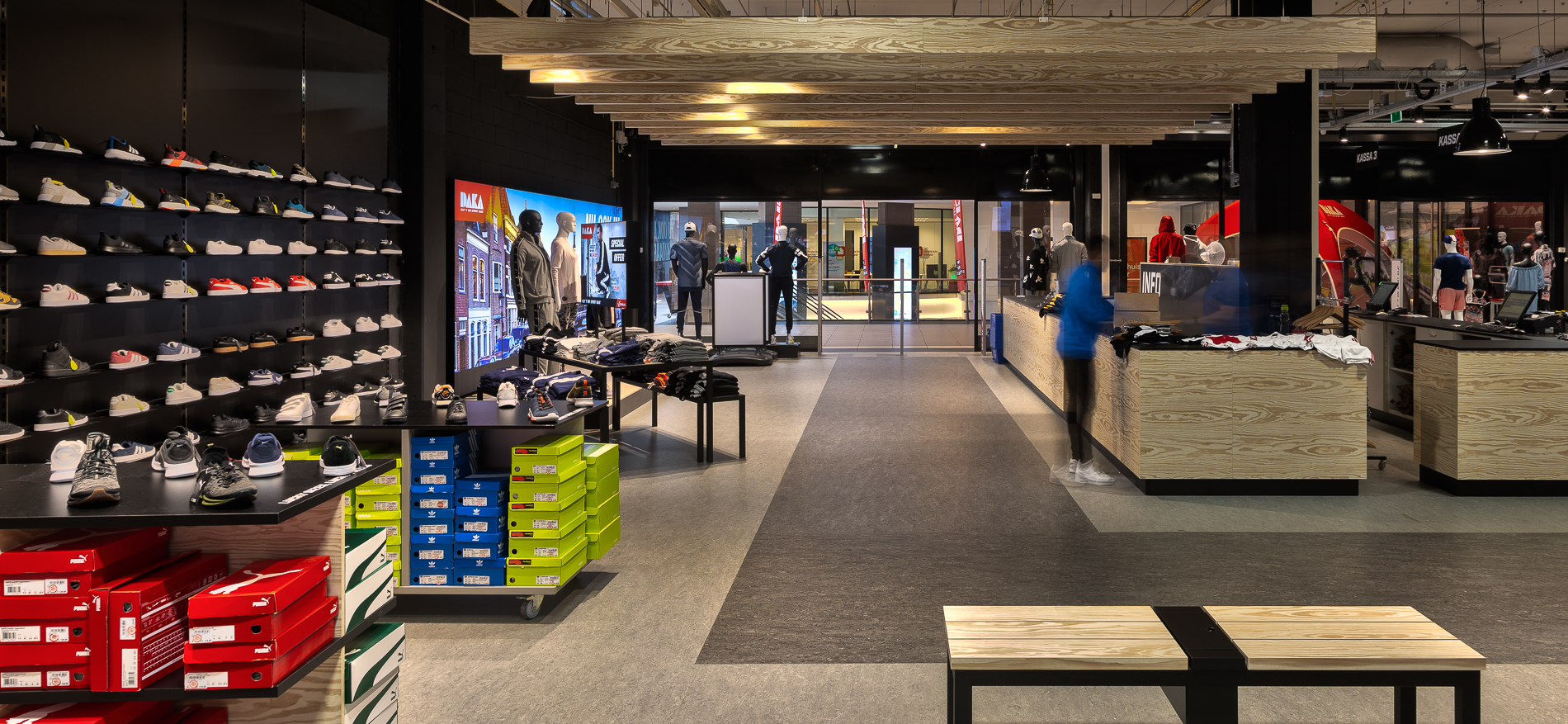 Außer dem vielseitigen und großen Angebot für den Sportler bietet das Geschäft auch Lifestyle-Kleidung und Schuhe für jedermann. Mit Marken wie The North Face, Superdry, Only, Vero Moda, Nike und Adidas findet hier jeder genau das, was er sucht! Von der Innenstadt aus ist das Geschäft über die Verbindungsbrücke bequem zu erreichen. Man parkt sein Auto ohne Probleme in der Parkgarage unter dem Geschäft.