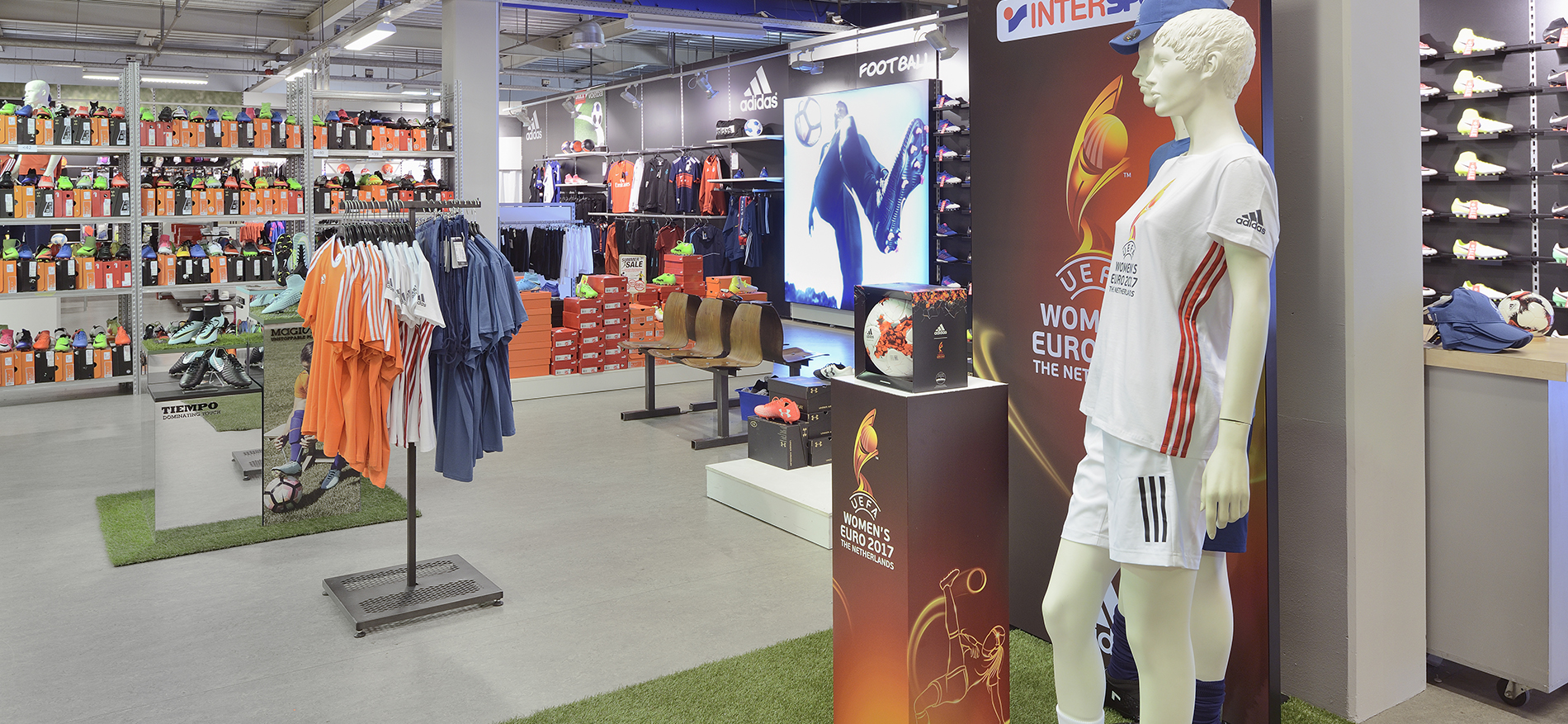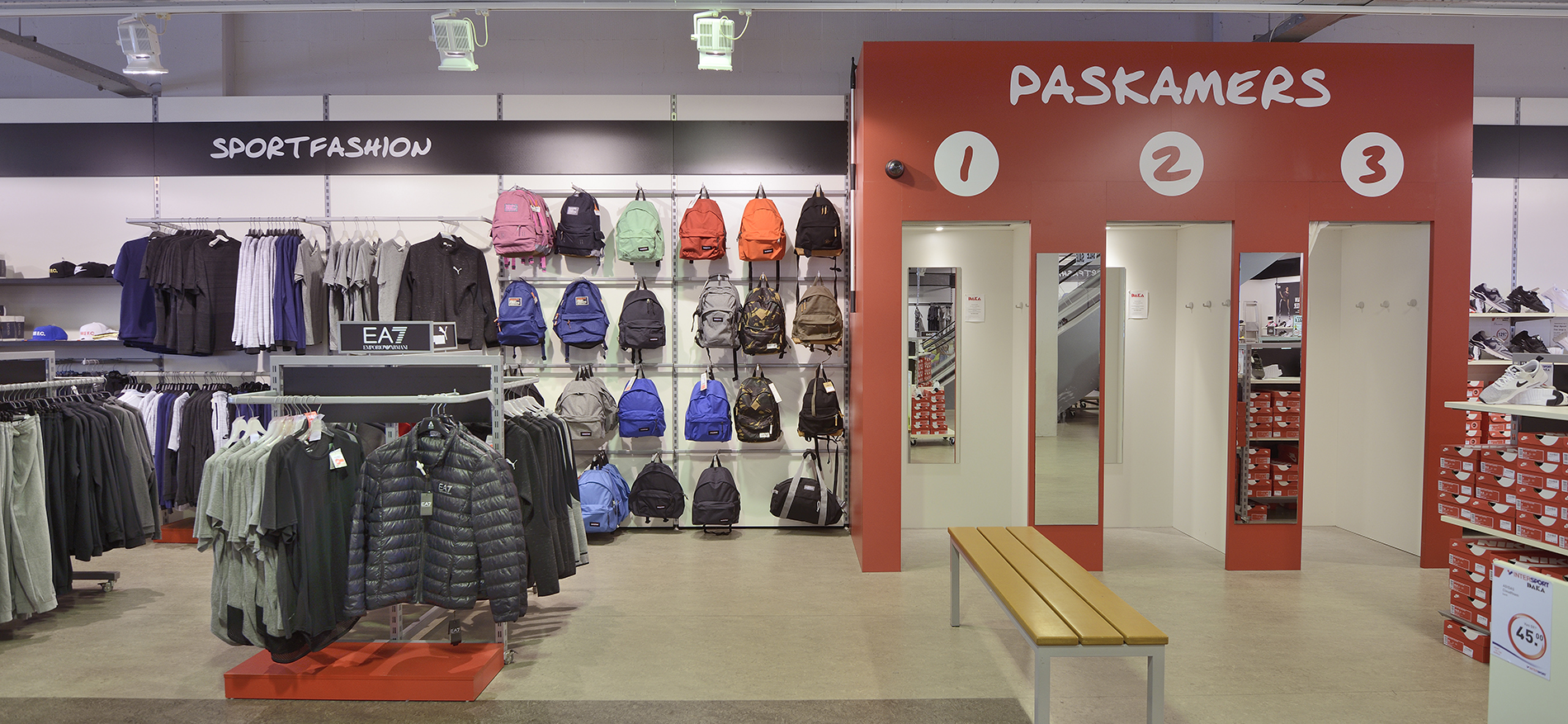 Daka Intersport Rotterdam ist ein Paradebeispiel dafür, wie eine ausgewogene Investition zum eingreifenden Upgrading führen kann. Wenn man das Sportgeschäft durch die Eingangstür betritt, sind die Anpassungen ganz offensichtlich, auch wenn nicht das ganze Geschäft angepasst worden ist. Die Anprobekabinen befanden sich vor dem Umbau in der Mitte des unteren Stockwerks, und das schadete der Übersichtlichkeit. Daher stehen diese Kabinen jetzt an der Wand – eine Anpassung, die dazu geführt hat, dass das Geschäft jetzt übersichtlicher und geräumiger aussieht.