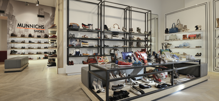Jede kreative Aufgabe beginnt mit folgenden Fragen an den Inhaber eines Geschäfts: Wer sind Sie und was wollen Sie erreichen? Was ist Ihre DNA? Wodurch unterscheiden Sie sich von anderen Wettbewerbern?« Aus diesen Antworten entwickelt das Team von WSB dann schließlich die Ideen, die die Auftraggeber zu mehr kommerziellem Erfolg führen sollen. »Unsere Ladenbaudesigner sind in Weltstädten wie New York, Paris, Berlin und London ständig unterwegs und lassen sich dort von besonders erfolgreichen Handelskonzepten inspirieren«. Auf diese Weise sind die WSB-Designer immer auf dem neuesten Stand des internationalen Ladenbaus. Die besondere Kompetenz hat auch mit der niederländischen Herkunft zu tun. Denn gerade in einem so dicht besiedeltem Land wie den Niederlanden ist es besonders wichtig, sich mit seinem Geschäft zu profilieren und von anderen Anbietern zu unterscheiden. ladenbau schuhe