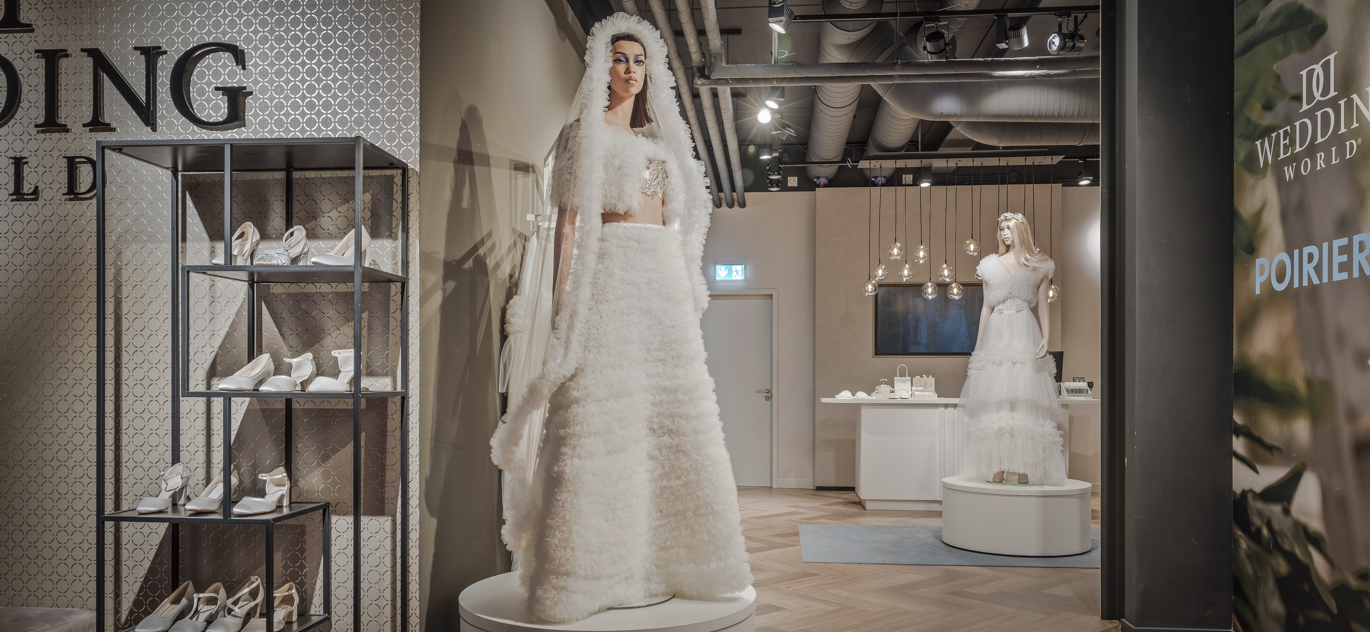 Tim van der Velde hat kürzlich das 2000 m² große Einkaufszentrum für Brautmode in Oberhausen, Wedding World, eröffnet. Dieses Erlebniszentrum für Brautmode und Brautaccessoires wurde von WSB konzipiert und realisiert. Das Ladendesign umfasst verschiedene Shop-in-Shops bekannter Marken, darunter die Brautmode-Accessoires-Marke Poirier. Das neue Gesamtkonzept des Brautmode-Stores hat eine unglaubliche Inspirationswelt für Paare geschaffen, die auf der Suche nach dem perfekten Outfit, Hochzeitskleid, Anzug und Accessoires für ihren besonderen Tag sind.