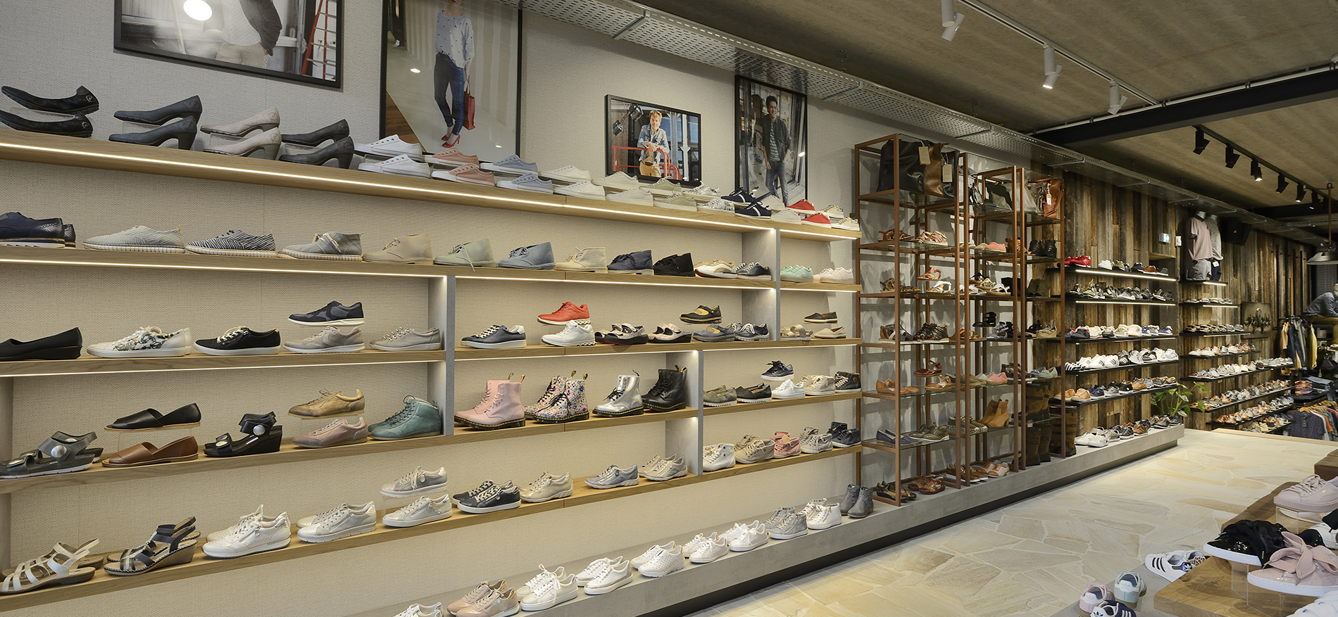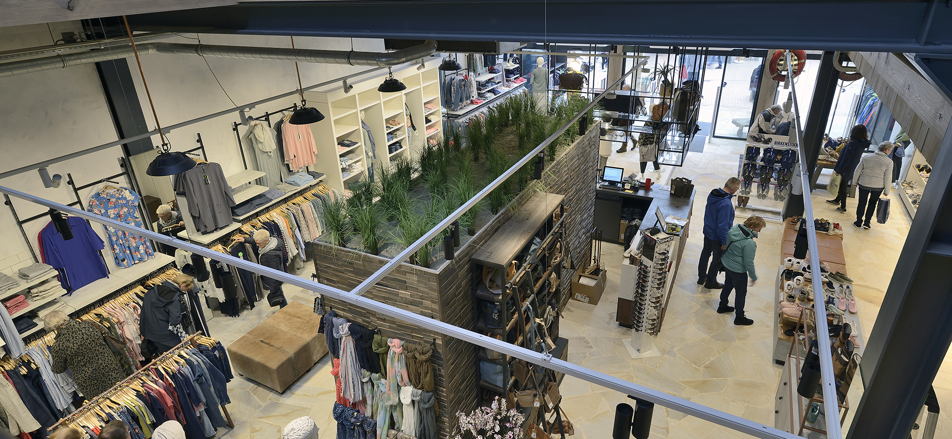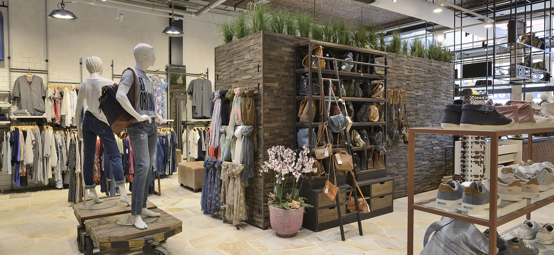 Das Modehaus verfügt über insgesamt drei Etagen, für die die Designer von WSB ein Innenkonzept erstellt haben. Der Keller ist eine echte „Männerhöhle“, hier bieten wir Herrenmode, Herrenschuhe und Jeans an. Das Erdgeschoss ist die Domäne der Damen mit Mode, Schuhen und Outdoor-Artikeln. Im ersten Stock können Männer Outdoor-Artikel kaufen und Kinder sind willkommen, Schuhe und Kleidung zu kaufen. Im zweiten Stock bieten wir Haushaltsprodukte und „Spezialitäten“ für Frauen an, darunter auch schöne Wohnaccessoires. Diese Haushaltsprodukte sind neu in der Mantje-Kollektion!