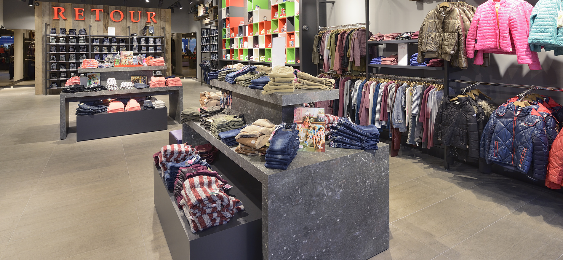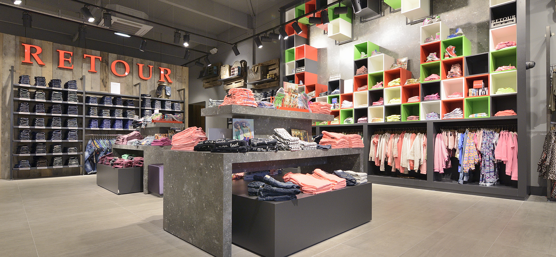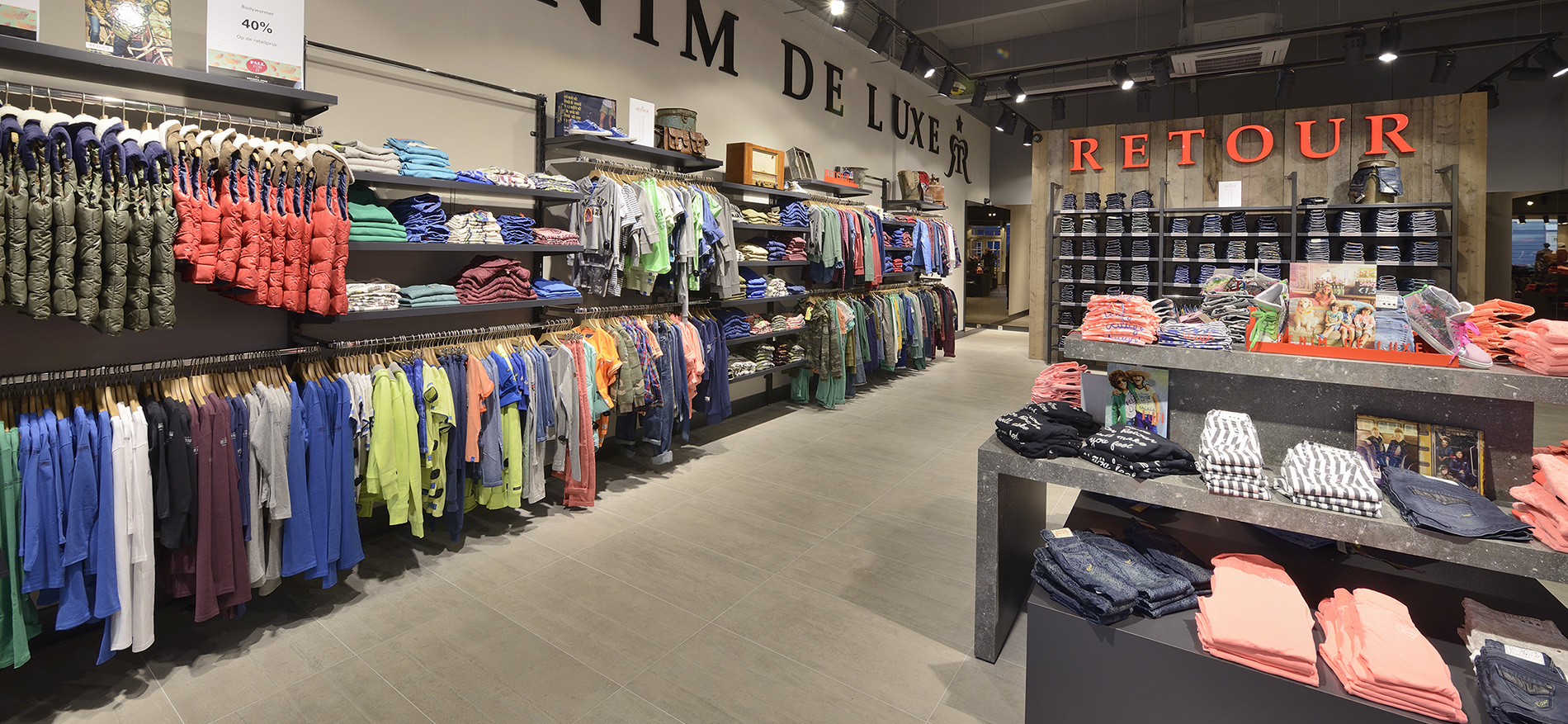 Für Retour Jeans Outlet in Bataviastad hat WSB eine robuste Innenausstattung entworfen, die dem Branding dieser Marke genau angepasst ist. Retour Denim ist eine niederländische Kinderbekleidungsmarke mit Kollektionen aus wertvollem Material und mit Aufmerksamkeit fürs Detail. Genau darauf ist die Innenausstattung dieses Kinderbekleidungsgeschäfts basiert.