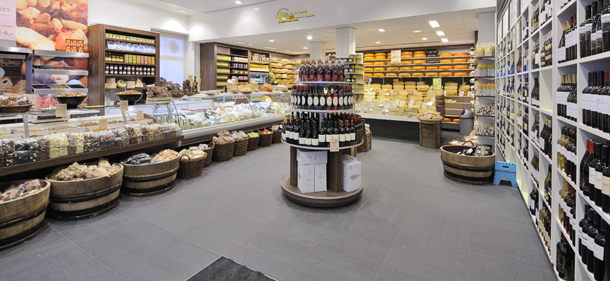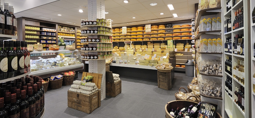 Kaasie Kaasie ist geschmackvoll von WSB Ladenbau eingerichtet. Kaasie Kaasie ist ein regionaler Spezialist für schmackhaften Käse, Nüsse und Weine! Das Retail Design und die schlüsselfertige Realisierung lag komplett in den Händen von WSB. Die Renovierung war wirtschaftlich erfolgreich. Food und WSB liegen nah beieinander. Kürzlich wurde auch das große Projekt ShopFly am Flughafen Eindhoven, Bremen und Wien eröffnet. Wir stellen auch Verpflegungsmöglichkeiten für unsere Soldaten in Afghanistan bereit. Der Erfolg liegt in der wettbewerbsfähigen Preisgestaltung in Kombination mit kommerziellen und kreativen Ideen unserer Einzelhandelsdesigner. Die Retail-Designer der WSB besuchen Städte wie New York, Paris und Berlin und wissen, wie sie die neuesten Trends auf konkrete Einzelhandelsumgebungen übertragen. WSB Interieurbouw erhält immer mehr Aufträge auf dem Markt für die Kühlmöbelindustrie aufgrund seines Wissens, ein kommerziell erfolgreiches Einkaufserlebnis in Kombination mit den praktischen Anforderungen und Funktionalitäten zu schaffen.