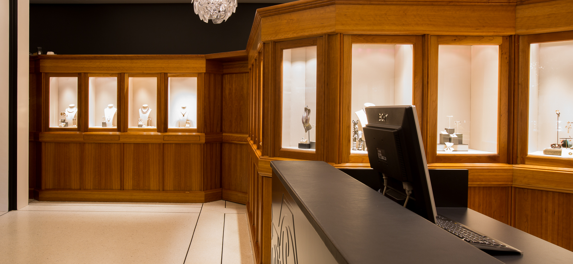 Die Schaufenstervitrinen sind sicher gestaltet worden, so dass die ehrgeizigen Marken genau ins rechte Licht gerückt und gleichzeitig geschützt und konserviert werden.