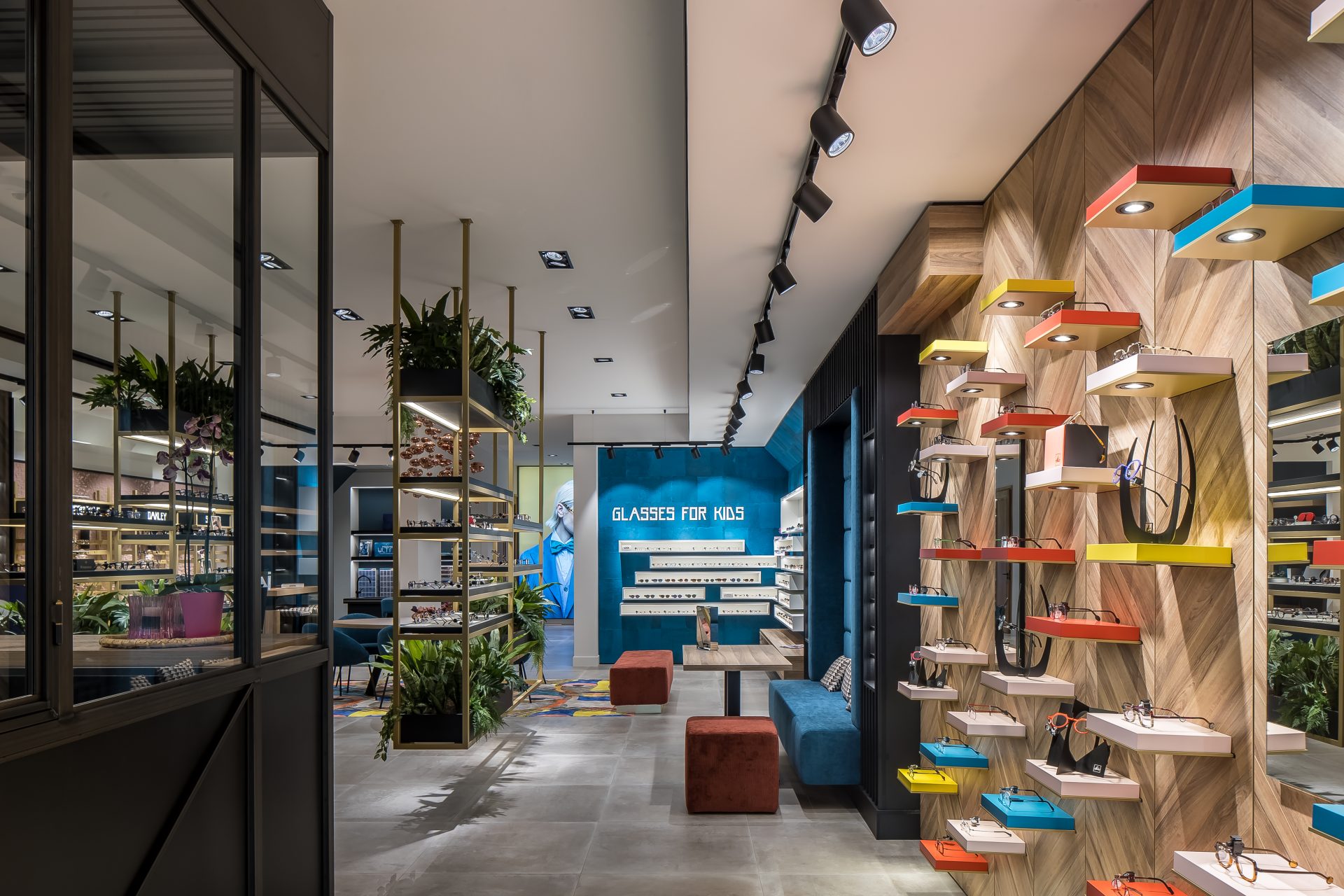 „Entwerfen Sie ein neues Konzept, das ein völlig anderes Einkaufserlebnis bietet als unser erstes Geschäft in Aalter“, sagt Dirk van Renterghem, Eigentümer von Optiek Tweyes. Industriell, hip, international und viel Farbe. Das sind die Schlüsselwörter, die dieses neue Konzept leiteten. Eine Totalsanierung des Gebäudes ermöglichte das Arbeiten mit einer Höhe von 6 Metern im Eingangsbereich des Stores. Auschecken, Kaffee servieren, reparieren und schärfen: Das alles passiert sichtbar im Laden. Dynamisch und erfolgreich, das können wir zum Ladenstart beruhigen!