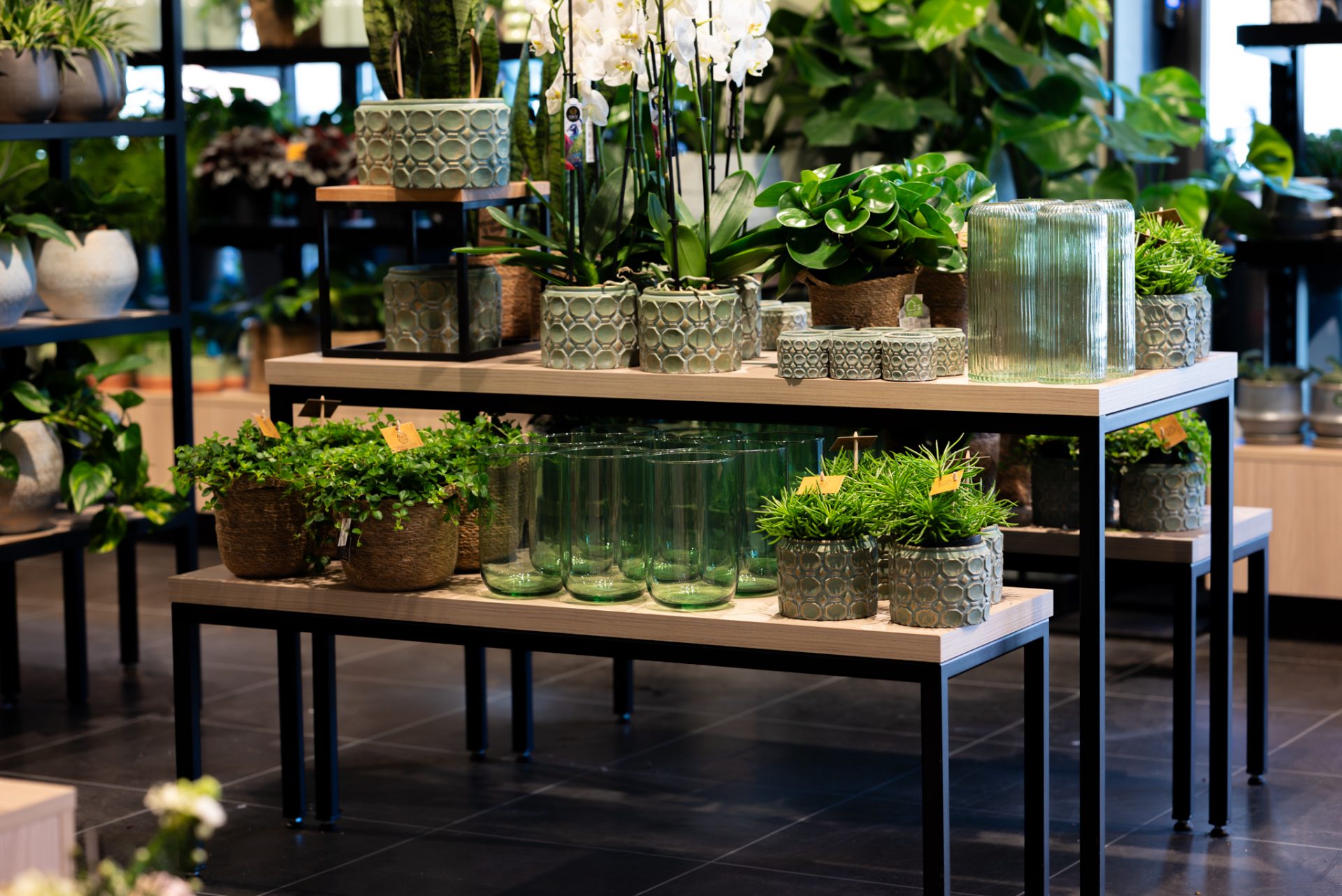 Trends bei der Ladeneinrichtung eines Blumenladens zeigen zunehmend eine Mischung aus authentischen Materialien und natürlichen Farben. Viele Geschäfte entscheiden sich für ein modernes, offenes Erscheinungsbild mit industriell anmutenden Elementen und einem grünen, natürlichen Touch. Durch den Einsatz von Holz- und Metallelementen erhalten die Läden eine ruhige und einladende Ausstrahlung. Diese Gestaltung lässt die Blumen besonders gut zur Geltung kommen. Eine durchdachte Kundenführung sowie Selbstbedienung und Self-Scanning sind dabei wichtige Aspekte.