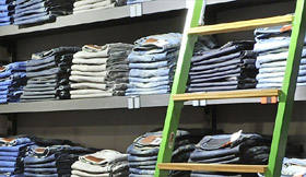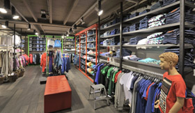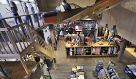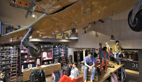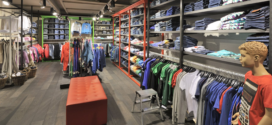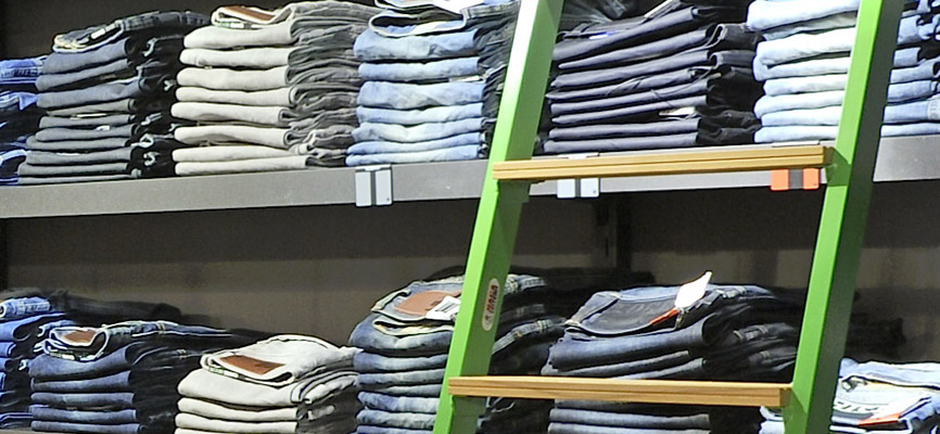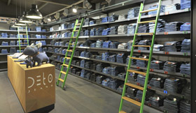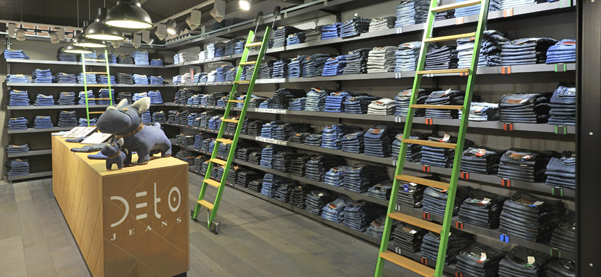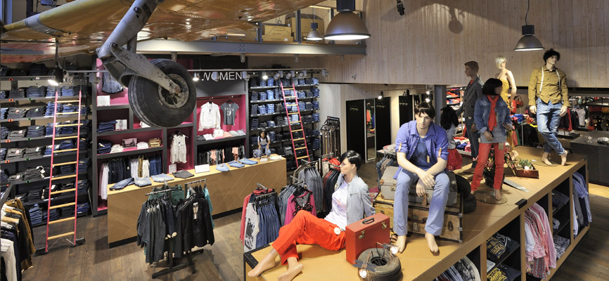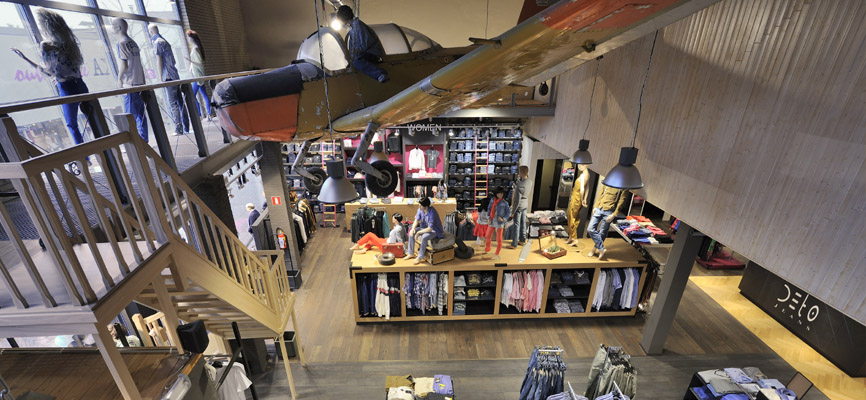 Deto Jeans in Axel kennzeichnet sich durch ein prachtvolles WSB Retail Design! Diese Modemall in Axel wird von vielen Kunden aus Belgien und den Niederlanden besucht. WSB Shopkonzept hat die Architektur des Gebäudes in eine Erlebniswelt von „Fliegen“ und „Lufthäfen“ umgewandelt. Die Einrichtung zeichnet sich durch pure und robuste Materialien wie Blaustahl, Bretterverkleidungen aus.