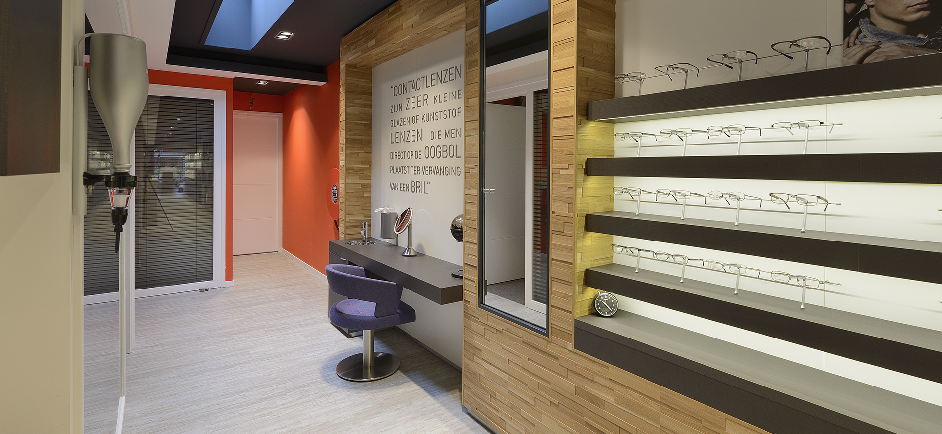 Ontwerp en inrichting door WSB interieurbouw Optiek Poelsma te Zeist