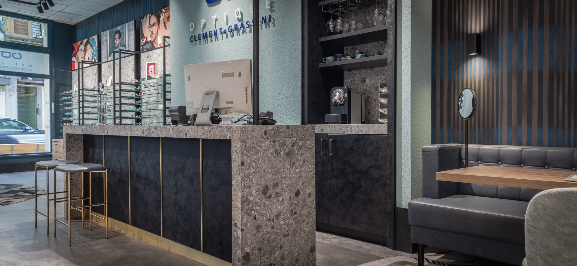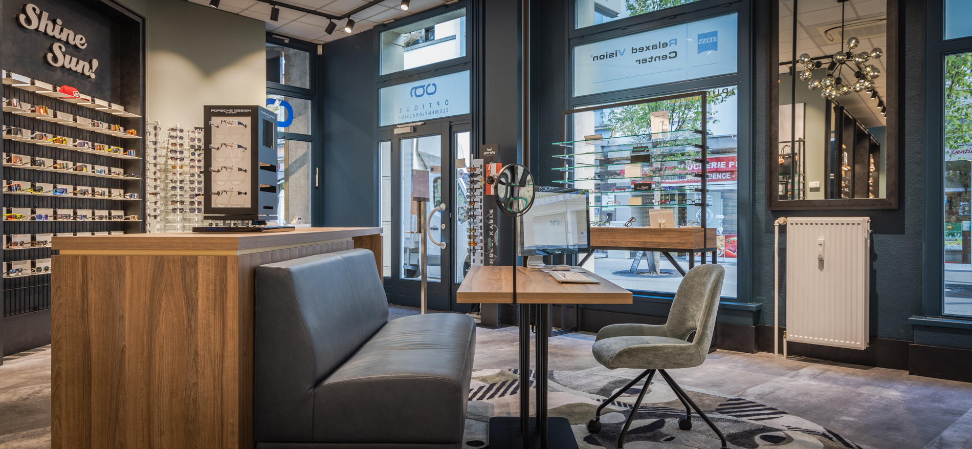 Vor 10 Jahren übernahmen Alain Clement und Laurent Grassini Optikgeschäft im Herzen. Nun stand ein Umbau an, da man im laufe der Jahre das Niveau deutlich nach oben gebracht hatte und die vorhandene Ladeneinrichtung das nicht wiederspiegelte. Ein angrenzendes Ladenlokal wurde angemietet, um die Verkaufs- und Beratungsfläche zu vergrößern und Prüfraum und Werkstatt auszuweiten.