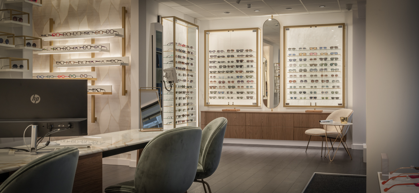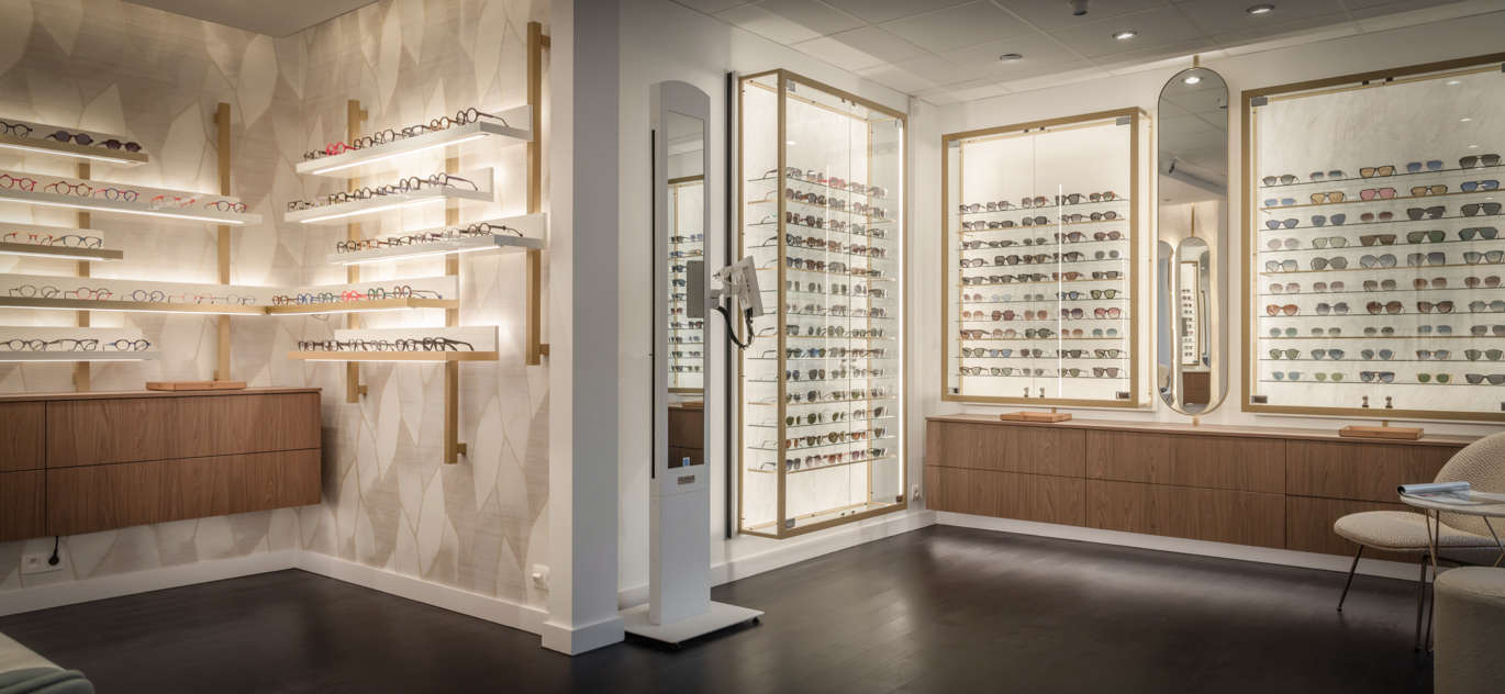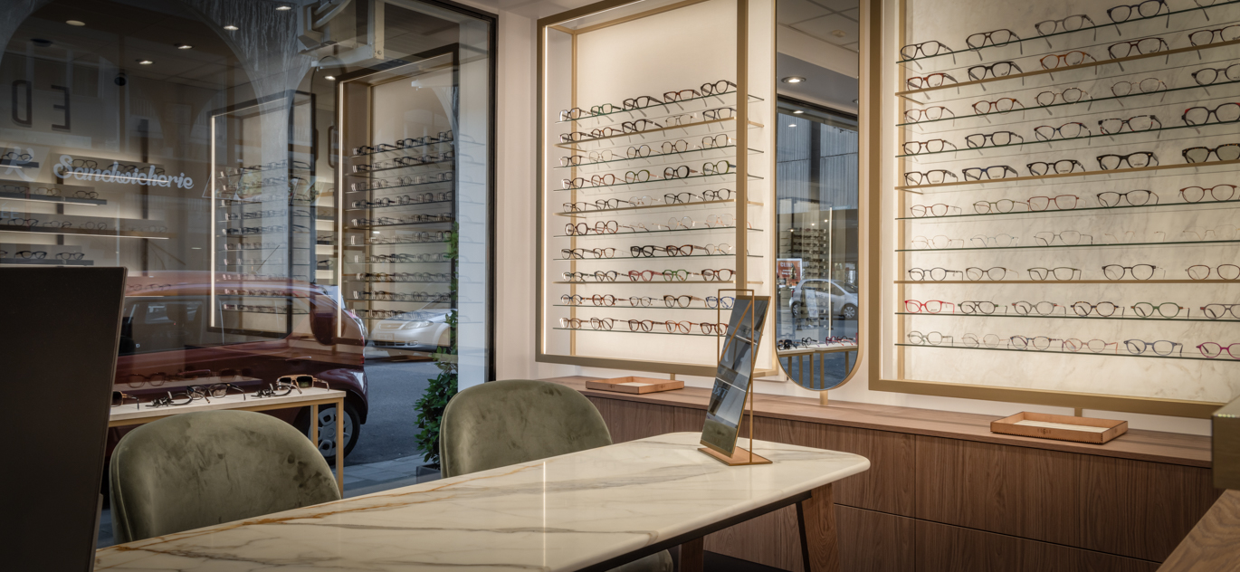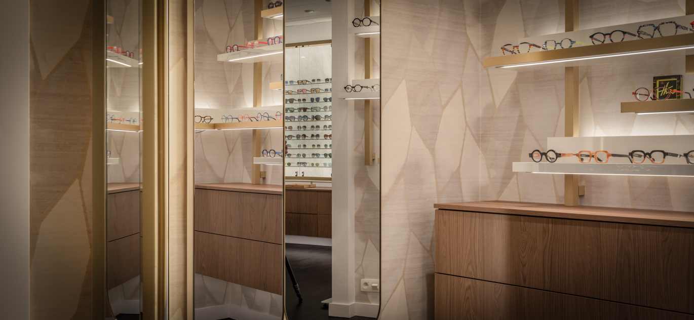 Die Aufgabe war klar: Entwerfen Sie ein Ladeninterieur, das Luxus und Exklusivität ausstrahlt und hochwertige Materialien wie Naturstein, Holzfurnier und Leder verwendet. WSB hat dieses Optikgeschäft in einem raffinierten, eleganten Stil eingerichtet, der sowohl einzigartig als auch wiedererkennbar ist. Im Optikgeschäft werden die schönsten Brillenkollektionen in maßgefertigten Glasvitrinen präsentiert, die perfekt zum luxuriösen Ladeneinrichtung passen.