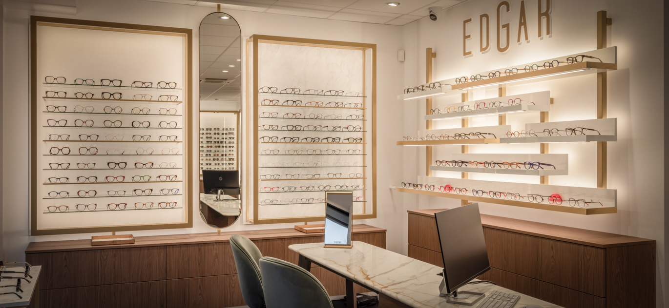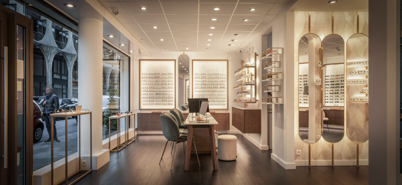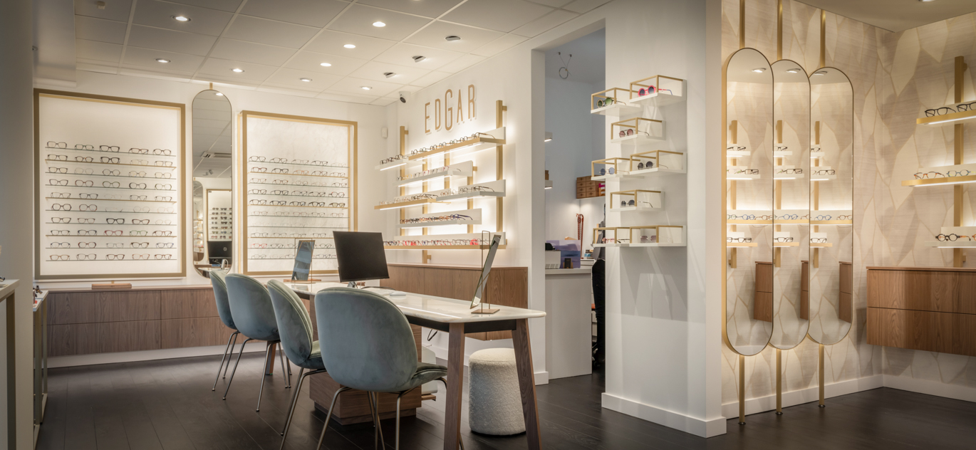 Eine einzigartige Ladeninterieur für das Optikgeschäft Edgar Optique
