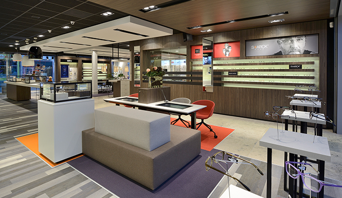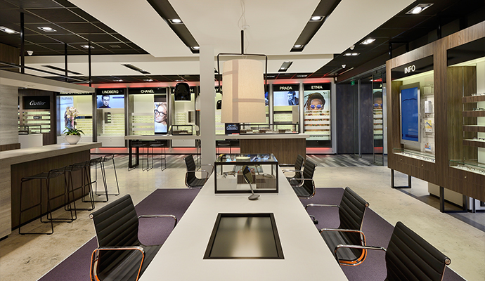 Ein straffer, moderner Laden mit Markenbewusstsein und Dynamik, warm, beruhigend und zum Erleben. Kein gewöhnlicher Laden. 2 Gebäude bautechnisch integrieren. Eine perfekte Integration von Augenmode und Augensorge ist erwünscht. Offen und transparent nach außen, damit der Laden zum Einhalten zwingt.