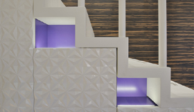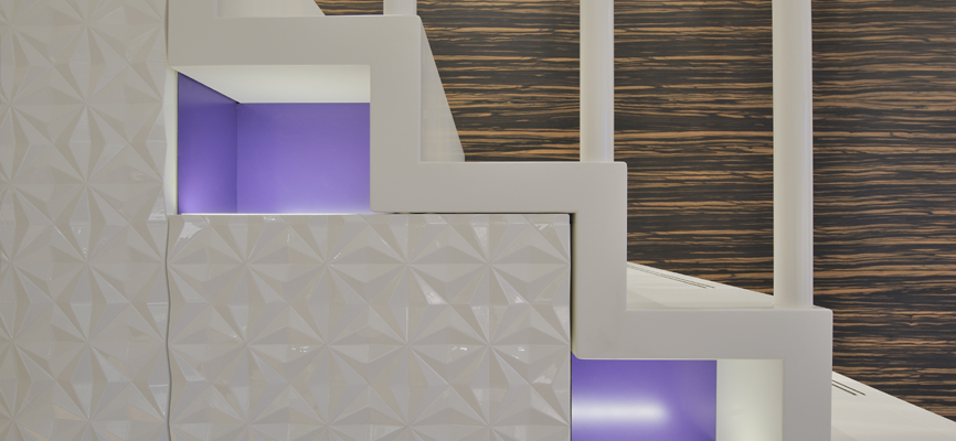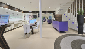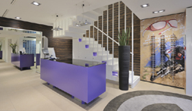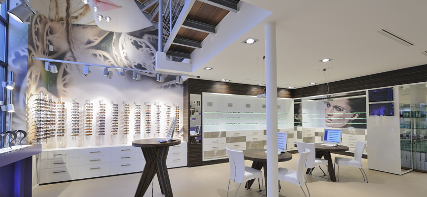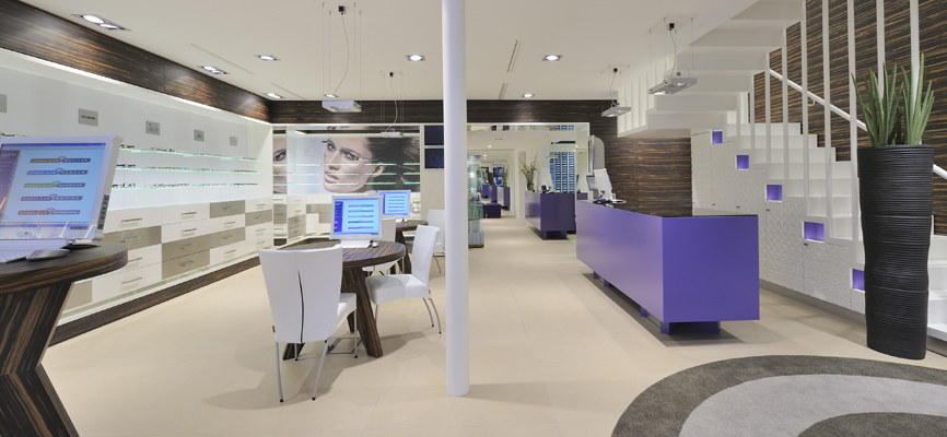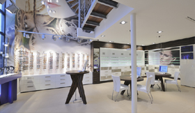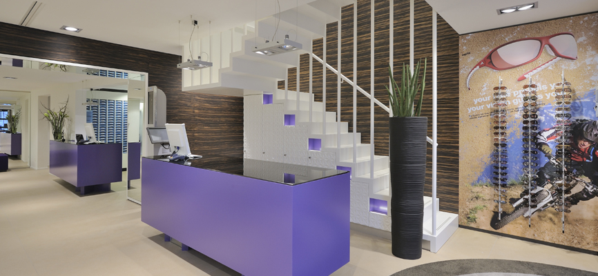 Ekelaar Optiek ist eine Augenweide unter den WSB Spitzendesigns. Wunderschöne Materialien wie Koromandelholz, rostfreier Stahl, Hochglanz gespritzte MDF und straffe Stuckarbeit sorgen für ein hochwertiges Qualitätserlebnis. Die Treppe ist Teil der Architektur und wird optisch vom treppenförmigen Schrank hinter der Verkaufstheke unterstützt. Im Obergeschoss wurden nach einer eingreifenden Anpassung zusätzliche Räumlichkeiten für Sehprüfungen geschaffen. Ein Keramik-Steinboden mit einer Stärke von 3 mm aus 90×90 cm Fliesen verstärkt die Räumlichkeit. Die Haute Couture Kollektion kommt in dem neuen Geschäft gut zur Geltung. Die Wand mit Sonnenbrillen ist 5,50 Meter hoch und echt spektakulär! Für mehr Informationen::info@wsbdesign.com