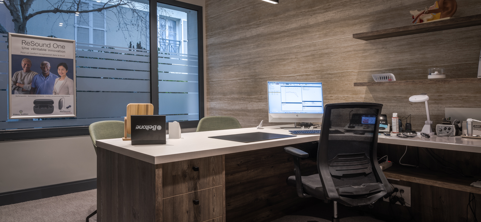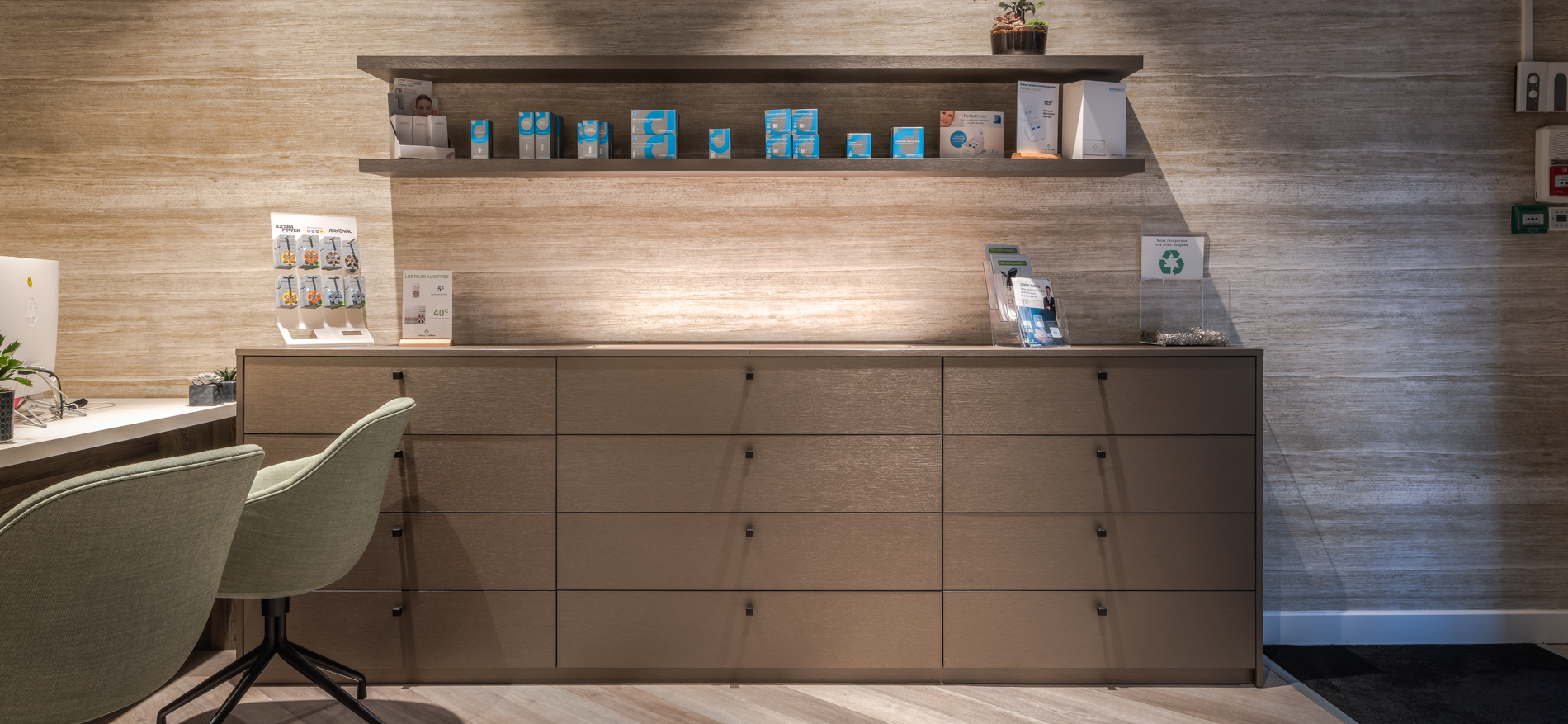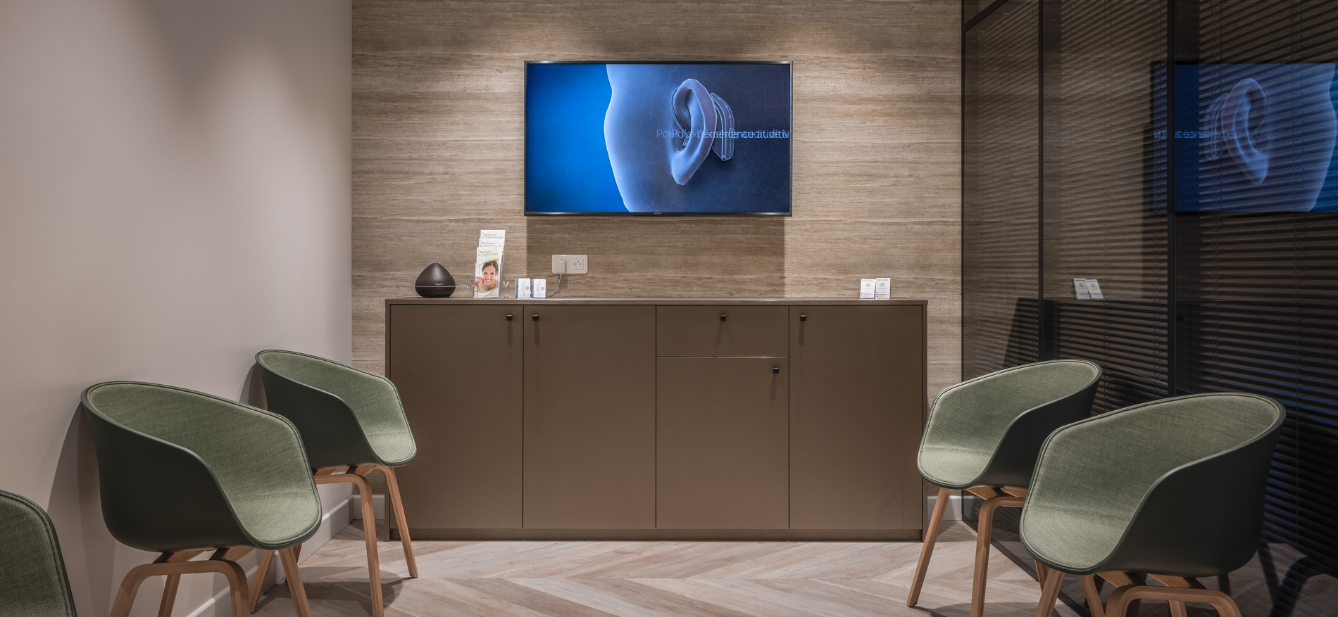 Thierry Nézondé kontaktierte WSB wegen der wunderschönen Hörgerätegeschäfte, die wir international betreiben. Der Laden in Poissy könnte in Quadratmetern erweitert werden. Daher ist es mittlerweile zum Flagship-Store geworden. WSB hat den Empfangsbereich professioneller und großzügiger gestaltet. Weitere Präsentationen wurden integriert. Auch die Anzahl der Behandlungszimmer wurde erheblich erweitert. Für die Konzeption, einschließlich des Lichtplans, aller Materialien für Decke, Boden, Tapetenverkleidung und Wandsysteme wurde gesorgt.