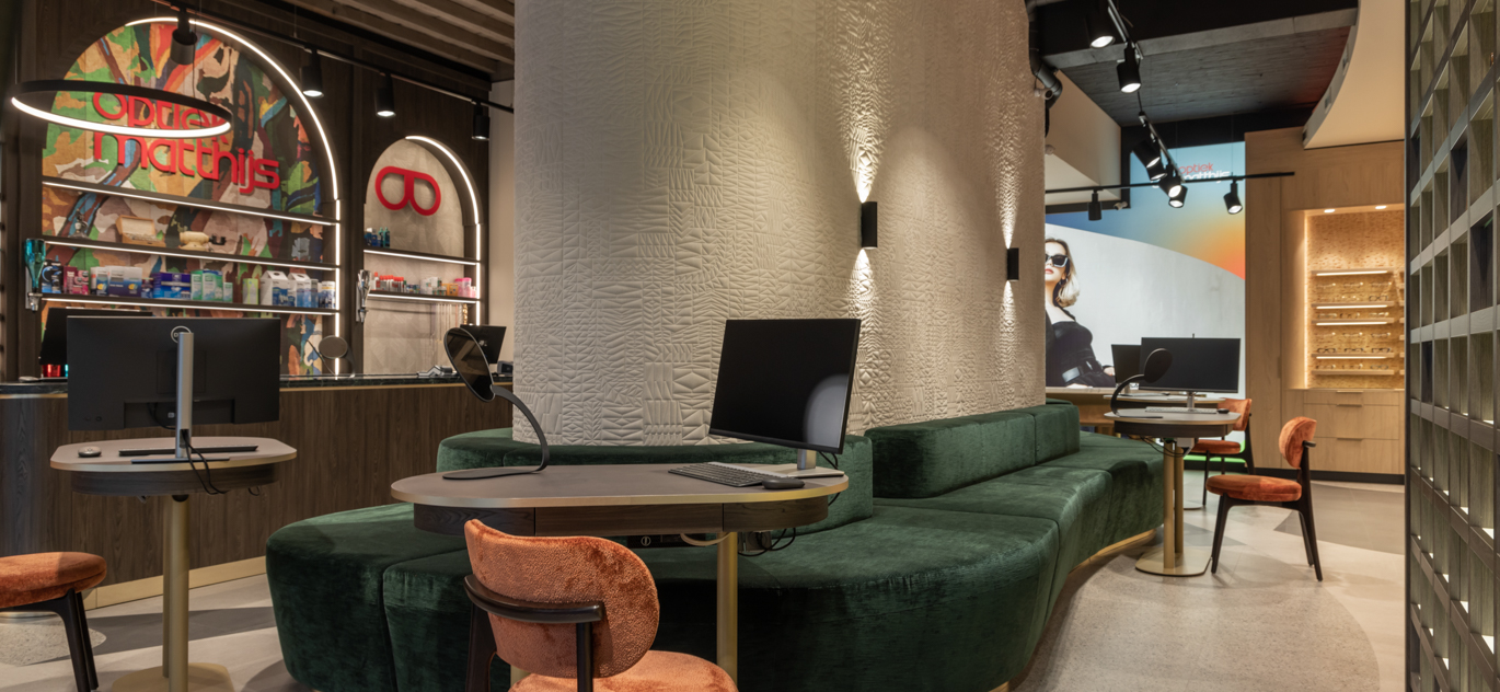Das Interessante an diesem Laden ist die tragende Wand, die das Gebäude optisch in zwei Teile teilt. Die Symbiose zwischen zeitgenössischen Elementen und einer Decke aus dem 17. Jahrhundert unterstreicht, wie sich modernes und historisches Design gegenseitig stark verstärken können. Die Brüder Jan und Karel Matthijs sind zusammen mit ihren Kunden sehr zufrieden mit der neuen Customer Journey, die diese einrichtung bietet. Dank sorgfältiger Planung und straffer Ausführung konnte der renovierte augenoptik im April 2024 wiedereröffnet werden.