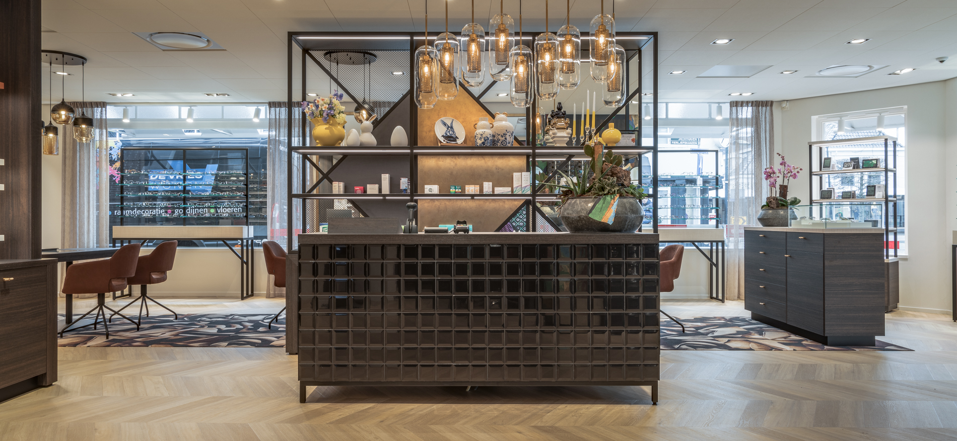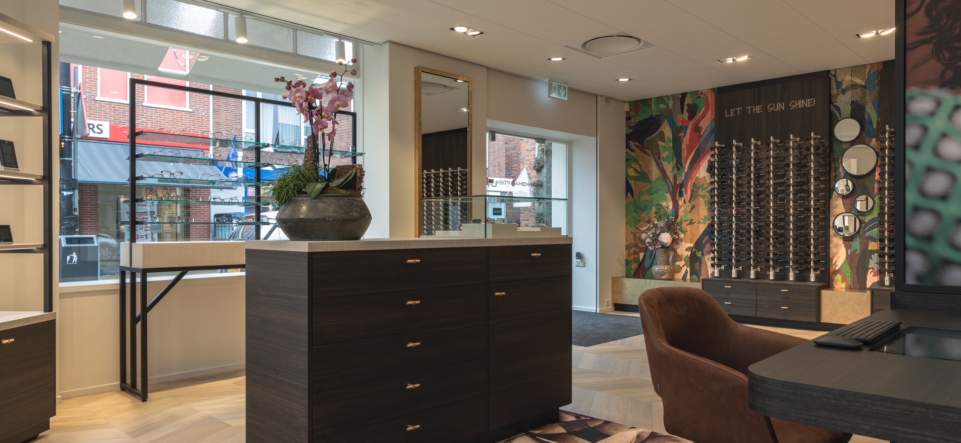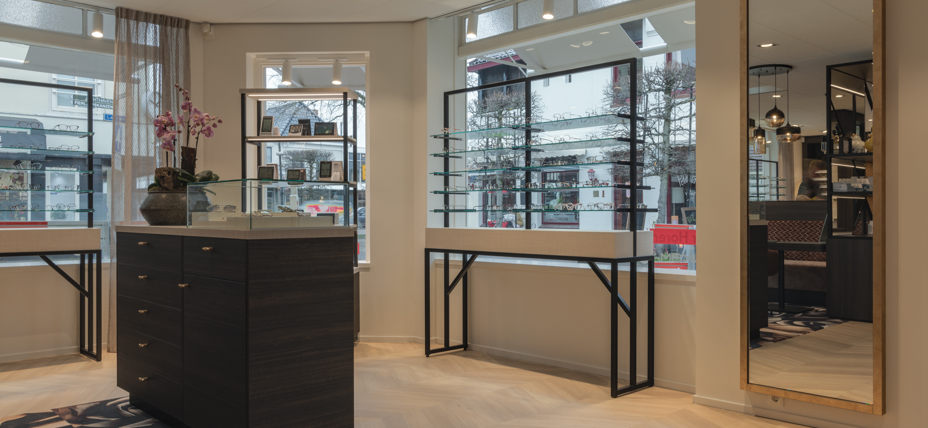 Brinksma Optiek in Burgum ist wieder ganz auf dem neuesten Stand. Nach der Ykema Optiek-Filiale in Bolsward wurde auch dieses wunderschöne monumentale Eckgebäude von Grund auf renoviert. Gemütlichkeit, Barrierefreiheit und Frische waren die Ausgangspunkte für die Shopgestaltung. Die Wegeführung wurde angepasst, um den Kundenfluss im Laden zu optimieren. Auch die Schaufenster sind offener gestaltet, um das Optikergeschäft transparenter zu machen.