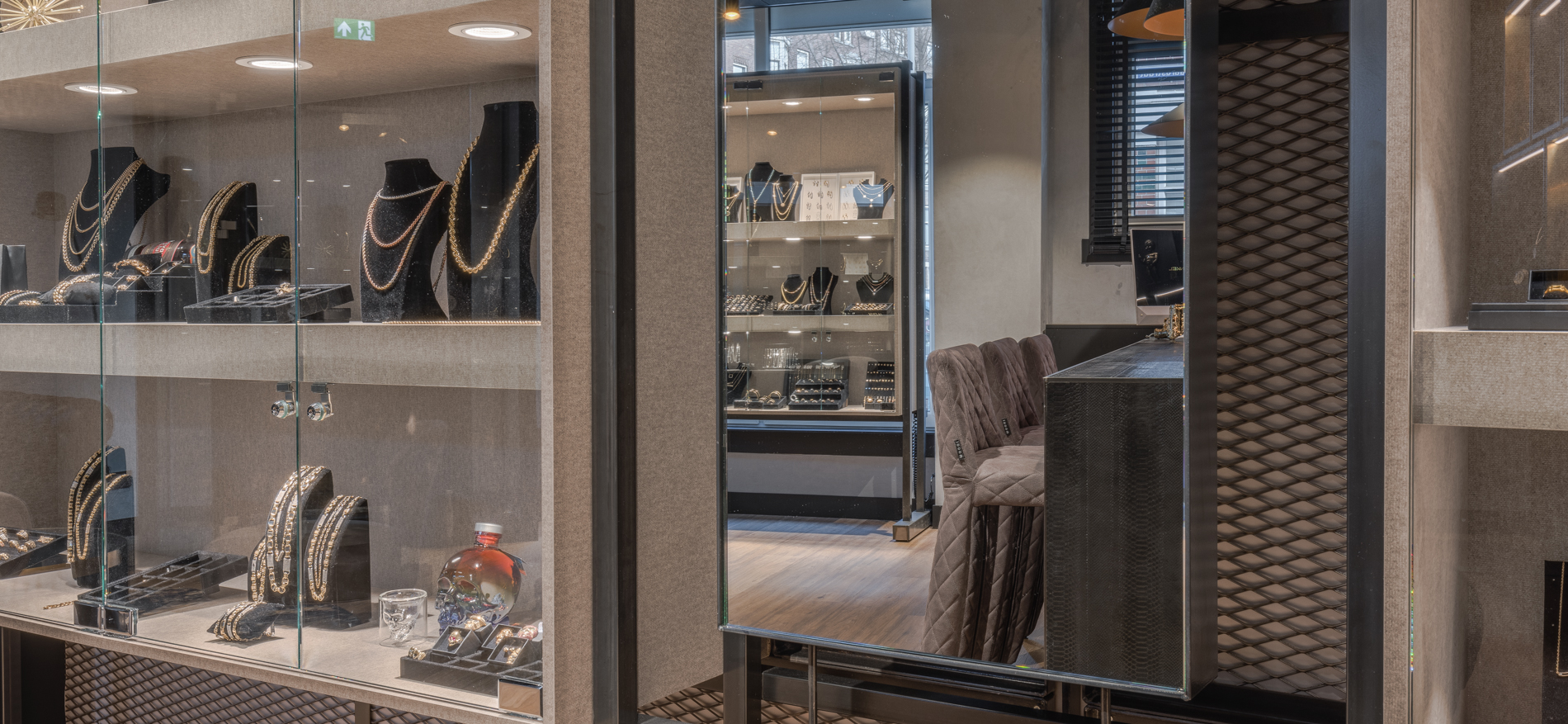 WSB entwirft hochwertige kommerzielle Konzepte für Ladeneinrichtungen (nicht nur für Juweliere und Optiker), Ausstellungsräume, Büroeinrichtungen und luxuriöse Wohneinrichtungen. Wir entlasten unsere Kunden von A bis Z durch den schlüsselfertigen Ansatz. Haben Sie Baupläne? Laden Sie uns zu einer inspirierenden Brainstorming-Sitzung ein.