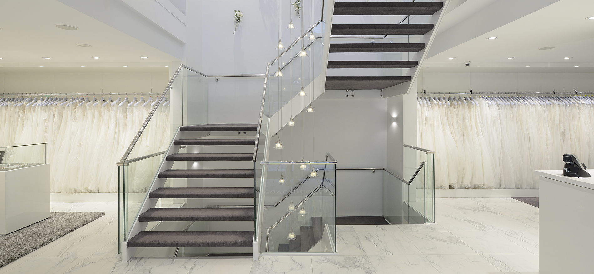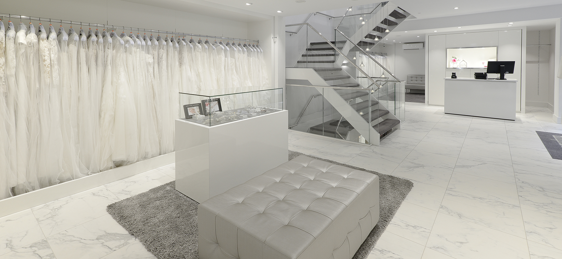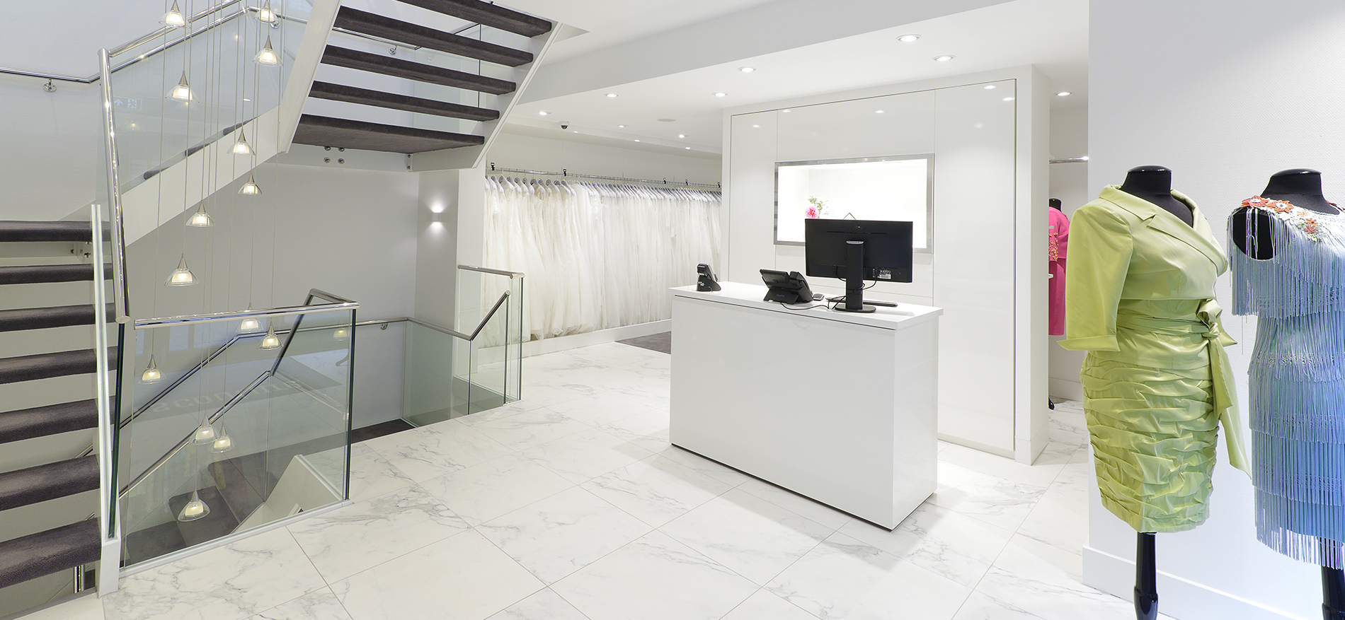 Von Anfang an hat WSB im intensiven Einvernehmen mit den Auftraggebern Hans und Alexandra den Entwurf und die Umsetzung der Ladeneinrichtung versorgt. Das direkt an eine jahrhundertalte Kirche angelehnte Gebäude hat einen Gewölbekeller und noch viele andere charakteristische alte Merkmale. Das vier Stockwerke umfassende Brautmodengeschäft wurde völlig in eine Erlebniswelt für die besten Marken auf dem Gebiet der Brautmoden umgestaltet.