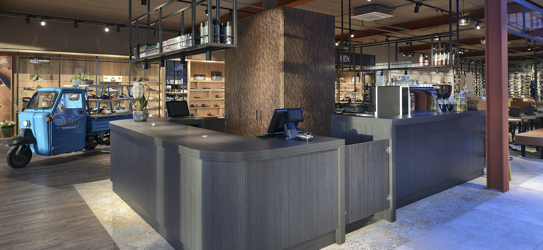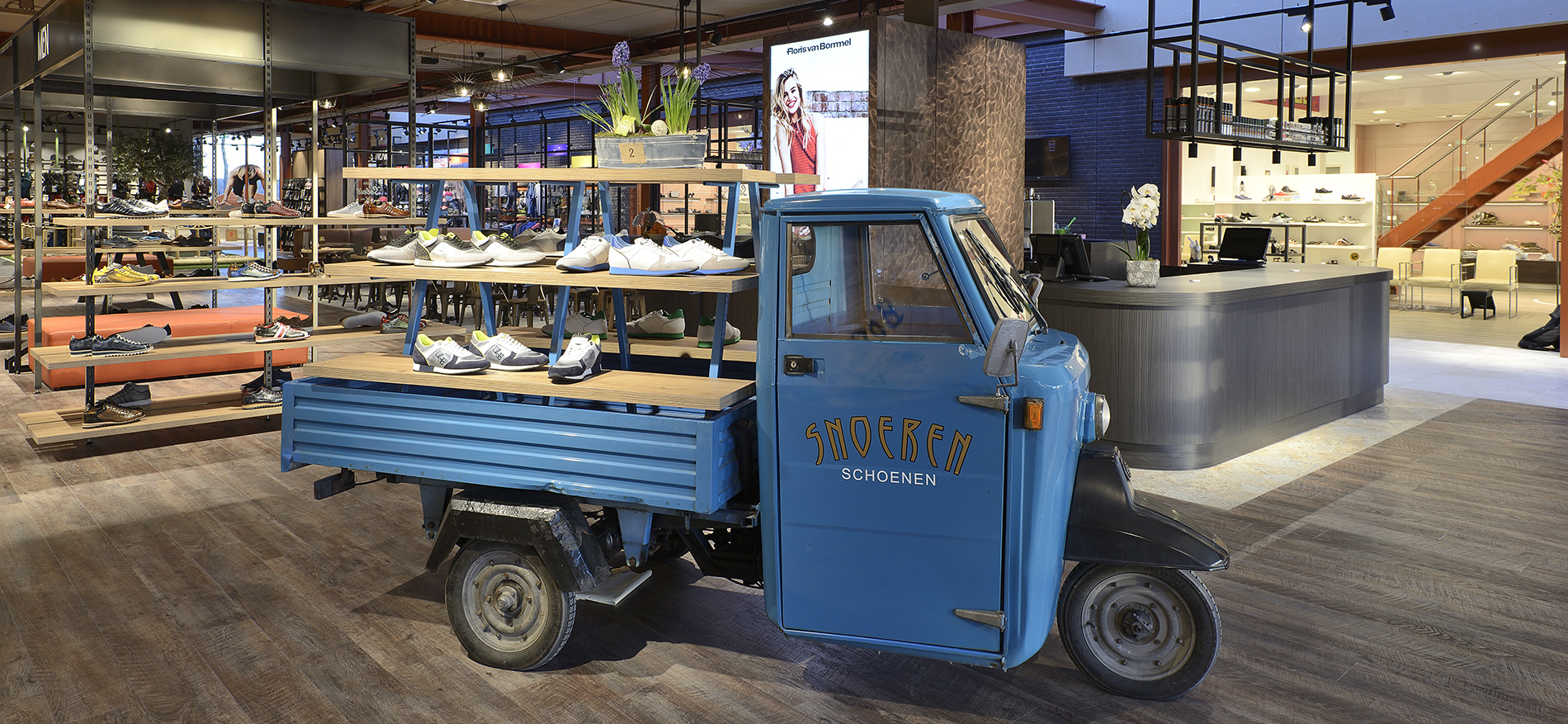 Für das große Schuhfachgeschäft der Familie Leon Snoeren haben die Retail Designer von WSB einen attraktiven Laden geschaffen.  Rick Blankenstijn von WSB: “Leon und die Zusammenarbeit beim Entwurf und der Realisierung waren sehr angenehm und vom ersten Moment an bis heute besonders konstruktiv! Das Konzept ist gut, der Entwurf ist modern und stimmungsvoll, aber es geht um das Gesamtkonzept, das wir in Gang gesetzt haben. Mit sechs Gründen, warum die Story von Snoeren so erfolgreich war, ist und sein wird: