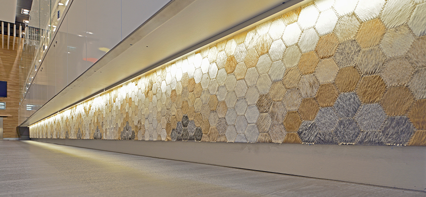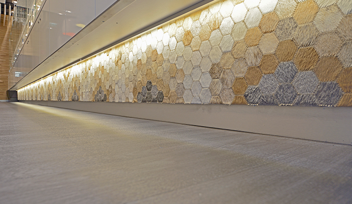 Nico Schreuder, Geschäftsführer von WSB Ladenbau, sagt: „Was macht den Verkaufser­folg aus? Es ist der Auftritt!“ Der alte Shop von Cadran hatte ein mittlerweile verstaubtes Schaufenster mit einem schmalen Eingangs­bereich. Alles wirkte ein wenig in die Jahre gekommen. Folge: Obwohl das Angebot stimmte, waren die Umsätze alles andere als befriedigend. Nico Schreuder: „Es gab ein­fach keine modische Atmosphäre.“ Dabei verkauft man trendige Uhren in den unteren bis mittleren Preislagen. Da ist man auf Fre­quenz angewiesen. Nach eingehender Analy­se von Standort und Kaufpublikum machten sich die WSB Ladenbauer an die Arbeit. Der Einsatz hat sich gelohnt: Die neue Filiale ver­fügt nun über eine einladende Atmosphäre mit einer großzügigen Eingangszone. „Bevor man sich versieht, ist man schon drinnen“, schmunzelt Nico Schreuder und fährt fort: „Und von den Vitrinen wird man regelrecht magnetisch angezogen.“ Modernste Materia­lien wie Edelstahl, mit Autolacken behandelte Oberflächen sowie eine Tapete aus Fellen, die zu einer bienenwabenartigen Struktur ver­näht sind, sorgen für einen zeitgemäßen Auf­tritt.
