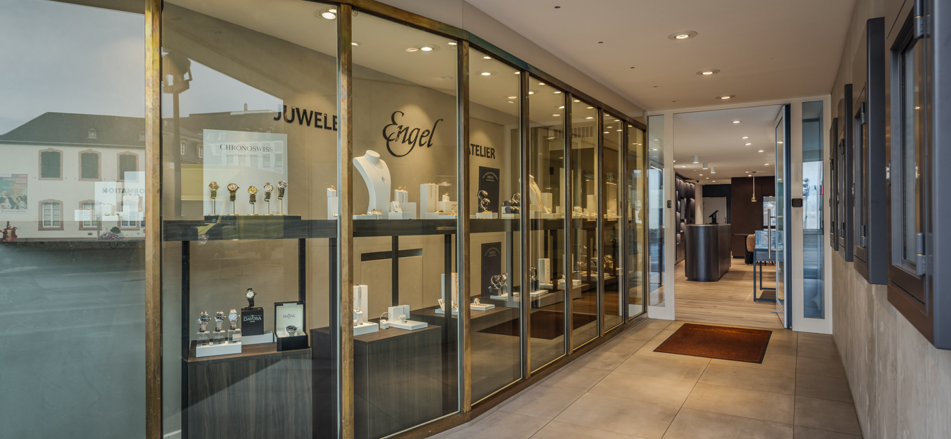 Nils Engel, der Sohn von Patrick und Stephanie Engel erlernte den Beruf des Goldschmieds und nachdem er seinen Meistertitel erworben hatte, kam er zurück ins elterliche Juweliergeschäft in Trier, direkt an der Porta Nigra gelegen. Zusammen wurde die Entscheidung getroffen, das Geschäft für die Zukunft fit zu machen. WSB wurde mit dem Design, der Konzeption, der Planung und Realisierung einer neuen Ladeneinrichtung für den Juwelier beauftragt. Für ein elegantes Ladendesign sollte das bestehende Schaufenstersystem neu inszeniert werden, das das Ganze etwas luftiger erscheinen lässt. Weniger ist manchmal mehr!