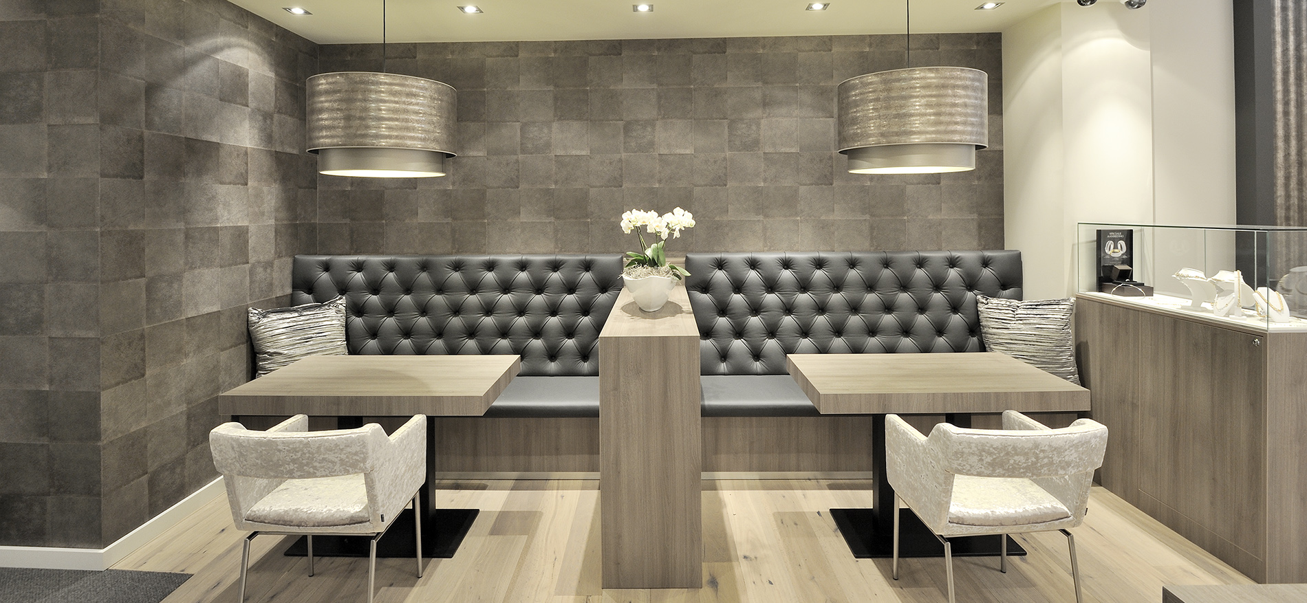 Das neu eingerichtete Geschäft Veringa im niederländischen Gorinchem ist beispielhaft für das Wirken und Streben von WSB Ladenbau. Innerhalb von nur drei Wochen Bauzeit realisierten die Macher von WSB Ladenbau ein gemütliches, dabei aber sehr modernes Wohnzimmerambiente. „Vor allem die Sitznischen kamen bei den Kunden sehr gut an. Diese Loungelösung gefiel dem Juwelier Pieter Jacobs so gut, dass er sie auch gleich in seinem kleinen Geschäft in Den Bosch, welches wir ebenfalls neu gestalten, umgesetzt haben wollte”, sagt WSB-Berater Rick Blankenstijn. Viele weitere Juweliere fragten aufgrund der auf der Homepage dargestellten Einrichtung nach ähnlichen Lösungen. So verwundert es nicht, dass Blankenstijn festellt: „Die Sitznischen sind momentan unser Top-Seller.”