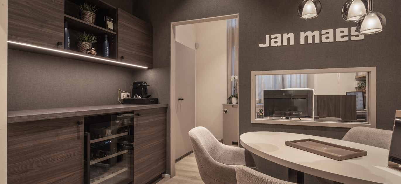 Die Bürofläche ist zwar etwas kleiner geworden, dafür aber effizienter gestaltet. Jan und Christina Maes, die stolzen Eigentümer, sind mit dem Endergebnis dieser umfassenden Renovierung äußerst zufrieden. Jan Maes Juwelen in Mechelen heißt Sie herzlich willkommen!