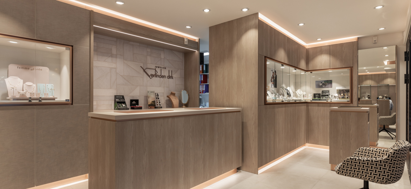 Der Juwelier Verlinden ist in der Region Brecht (BE) ein bekannter Name. Dirk und Lylian sind die Gesichter des Unternehmens. Es ist immer viel los. Menschen kommen und gehen mit wunderschönem Schmuck und Uhren. Warum renovieren, wenn das Geschäft gut läuft? Größer ist nicht unbedingt besser. Bei Juwelier Verlinden dreht sich alles um Kundenkontakt, Qualität der Produkte und handwerkliches Können bei Reparaturen und Wartung. Der Auftrag an WSB war einfach: Geben Sie dem Geschäft ein neues Aussehen, aber die Identität muss die gleichen starken Werte bewahren.
