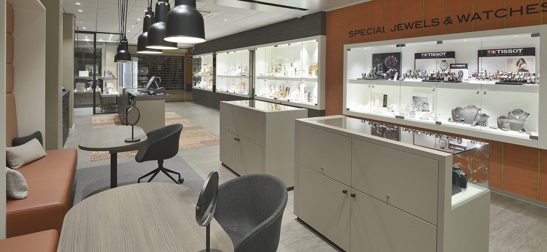 Entwurf und Einrichtung durch WSB Interieurbouw bei Juwelier- Arensbergen – Malden