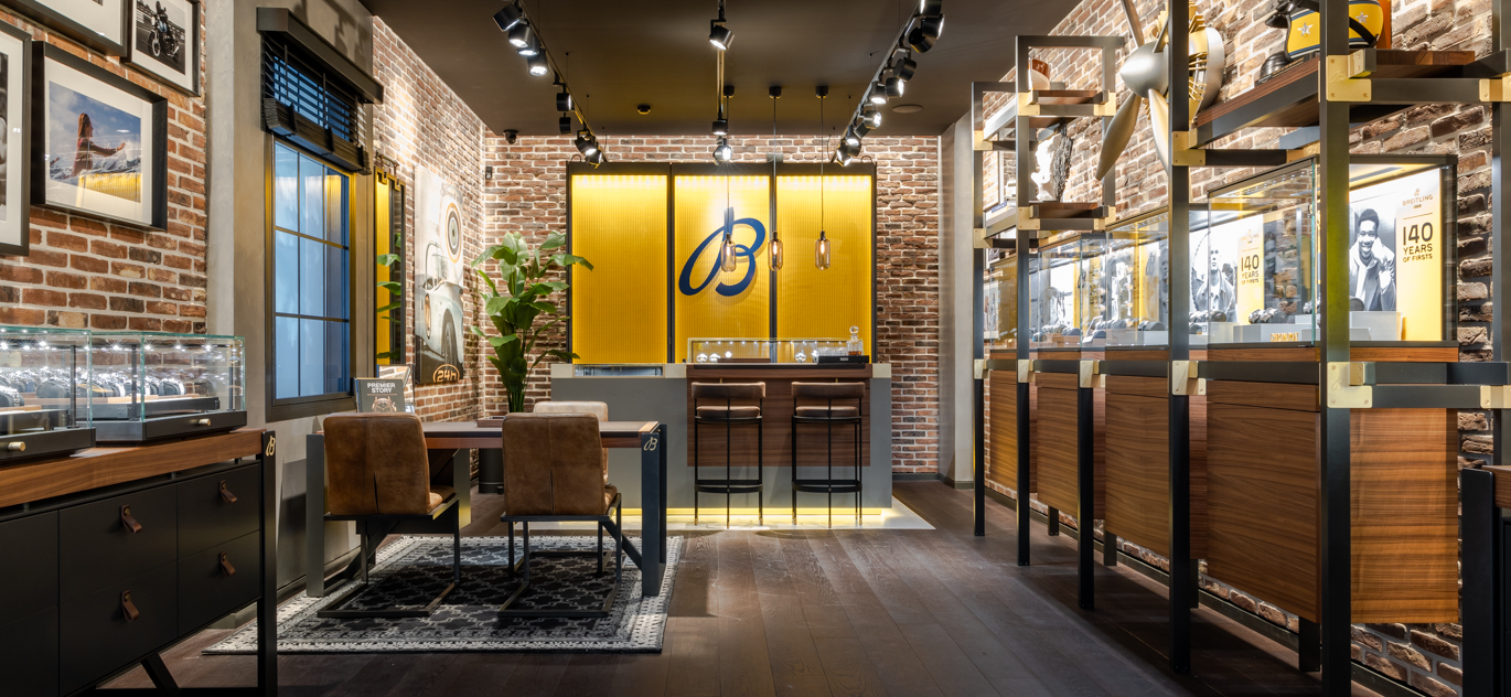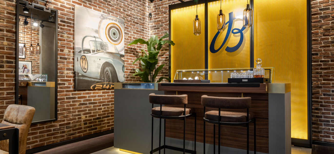 Nico Schreuder erklärt: „Die Aufgabe an WSB war es, im hinteren Bereich des Geschäfts eine Verbindung mit dem bestehenden Laden zu schaffen, der im mittelhohen Segment tätig ist, aber mehr Raum benötigte, um sich im Hochpreissegment weiter zu entfalten. Die Herausforderung bestand darin, aus dem aktuellen Büro und der Werkstatt ein architektonisches High-End-Juwel zu schaffen, das im Stil und Niveau mit Breitling harmoniert, das ebenfalls gleichzeitig dort platziert wurde.“