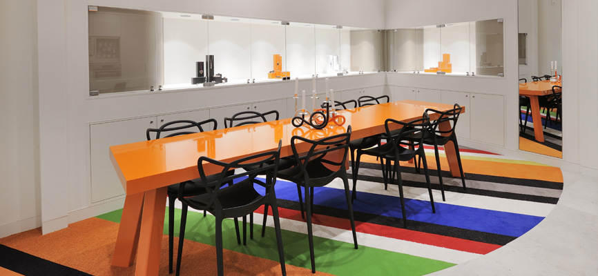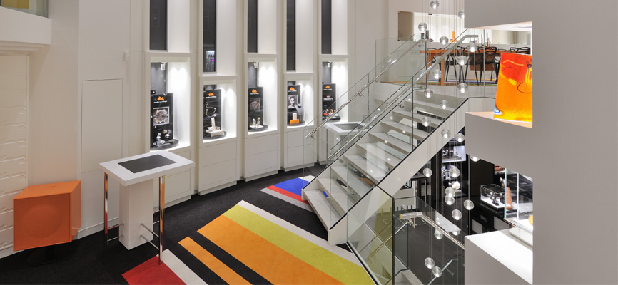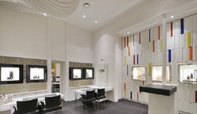 Erklärung >> Andererseits begriffen die Einrichtungsdesigner, dass dies ein Laden werden musste, den es weltweit noch nicht gibt. Ein Klimasystem, Beleuchtung, Vitrinen und andere Einrichtungsgegenstände wurden exklusiv für Van Willegen entworfen und produziert. Ko