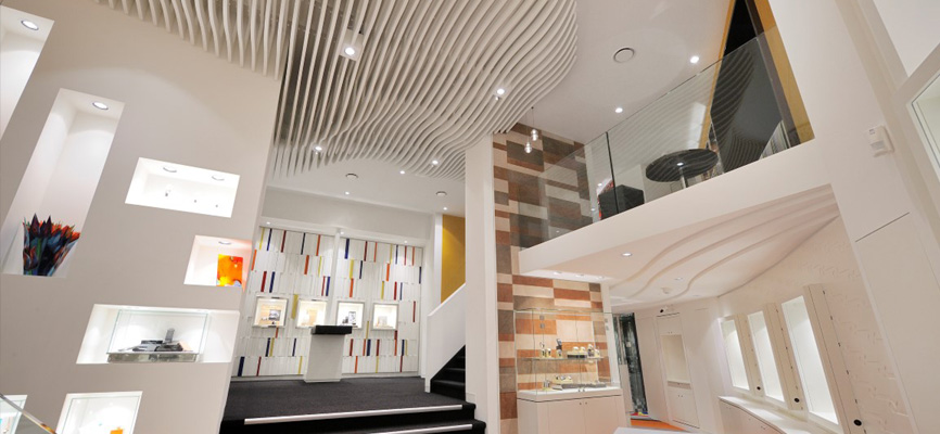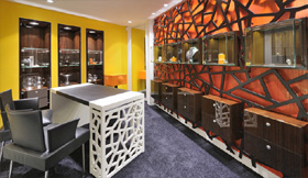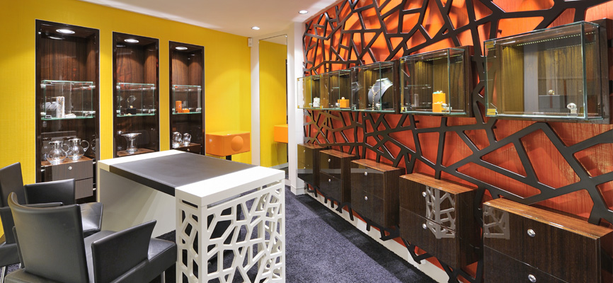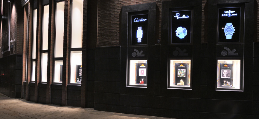BRIEFING >> “Eine Grundoberfläche um ein Dreifaches vervielfältigen, erfordert einen völlig neuen Denkprozess. Das ist ohne Experten nicht zu realisieren. Die fanden wir bei WSB Ladenbau.“ Um sich ein Bild davon machen zu können, was sie wollten und was nicht, reisten Cécile und Martijn van Willegen nach Hong Kong und Milaan, um sich dort inspirieren zu lassen. Alle Impressionen und Wünsche wurden den Einrichtungsgestaltern der WSB präsentiert. Wiederholt wurde das Juwelierehepaar vom Sparringsteam der WSB mit der Bemerkung: „Ihr habt kein 5 Sterne Hotel, sondern ein Juweliergeschäft“