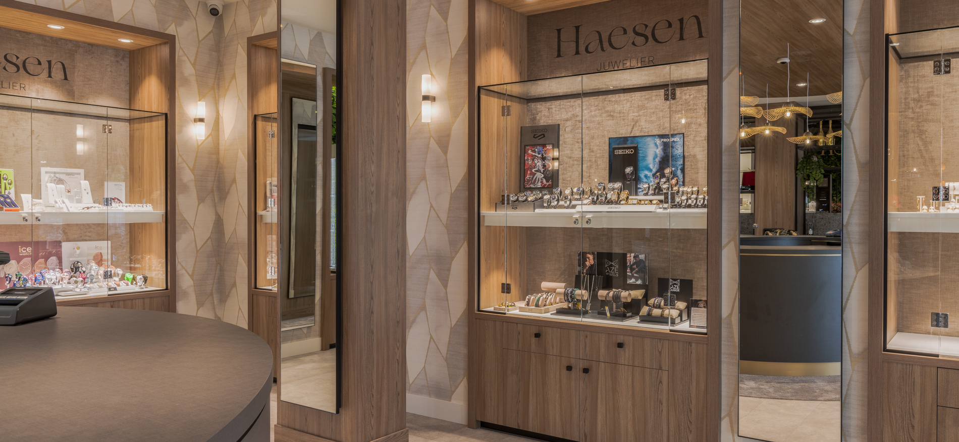 Unter der Regie von WSBDESIGN.COM | Interieurbouw hat mit einem Netzwerk von Subunternehmern aus der Region, aber auch Spezialisten weit darüber hinaus zusammengearbeitet. Alles wurde von Grund auf gepflegt. Rick Blankenstijn: „Wir als Team WSB möchten uns bei Robert und Francien Haesen für die großartige Zusammenarbeit bedanken, wir freuen uns wirklich sehr, dass die ‚Weihnachtsmonate‘ nach der Eröffnung bereits mehrere Monate andauern, und es ist sehr schön zu hören, dass die teureres Schmuck-, Schmuck- und Uhrensortiment lässt sich jetzt viel leichter verkaufen!“