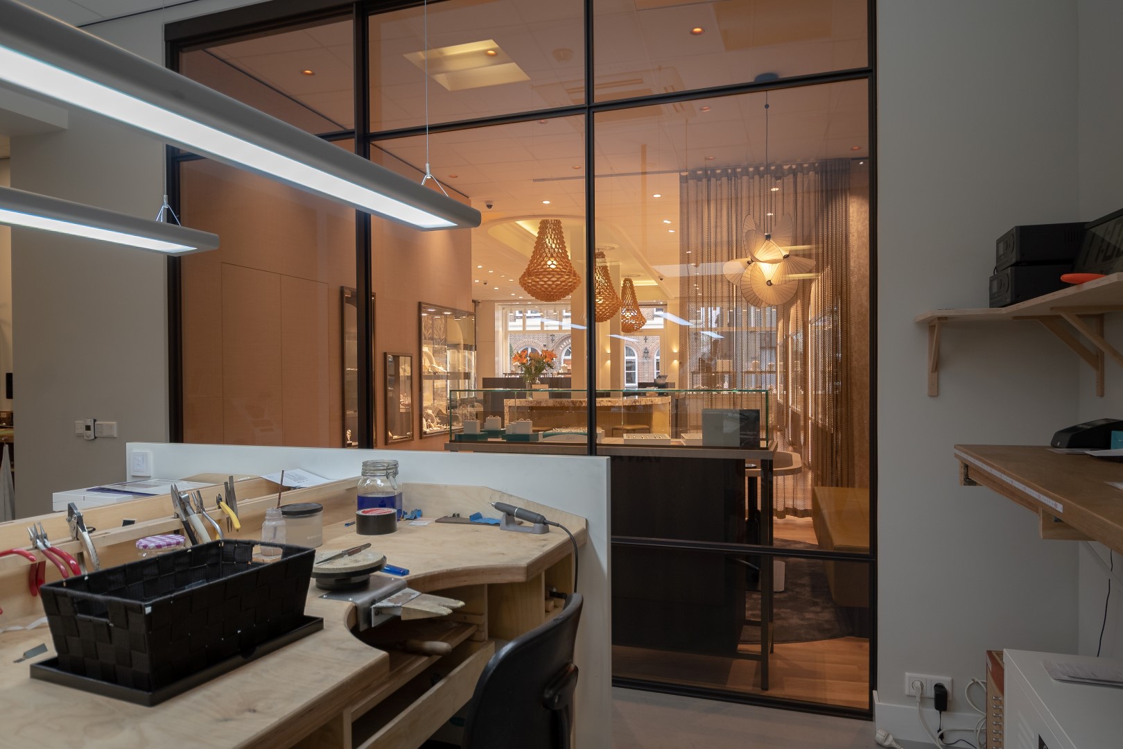 Tjeerd fügt hinzu: „Wir konnten den Kunden nicht das bieten, was sie von Juwelier van Arensbergen gewohnt sind.“ Wir hatten zu wenig Platz für unsere Marken und mussten damals oft Nein sagen. Das passt nicht zu unserem Arbeitsstil. Daher unsere Renovierung mit WSB in den ersten beiden Dezemberwochen.’