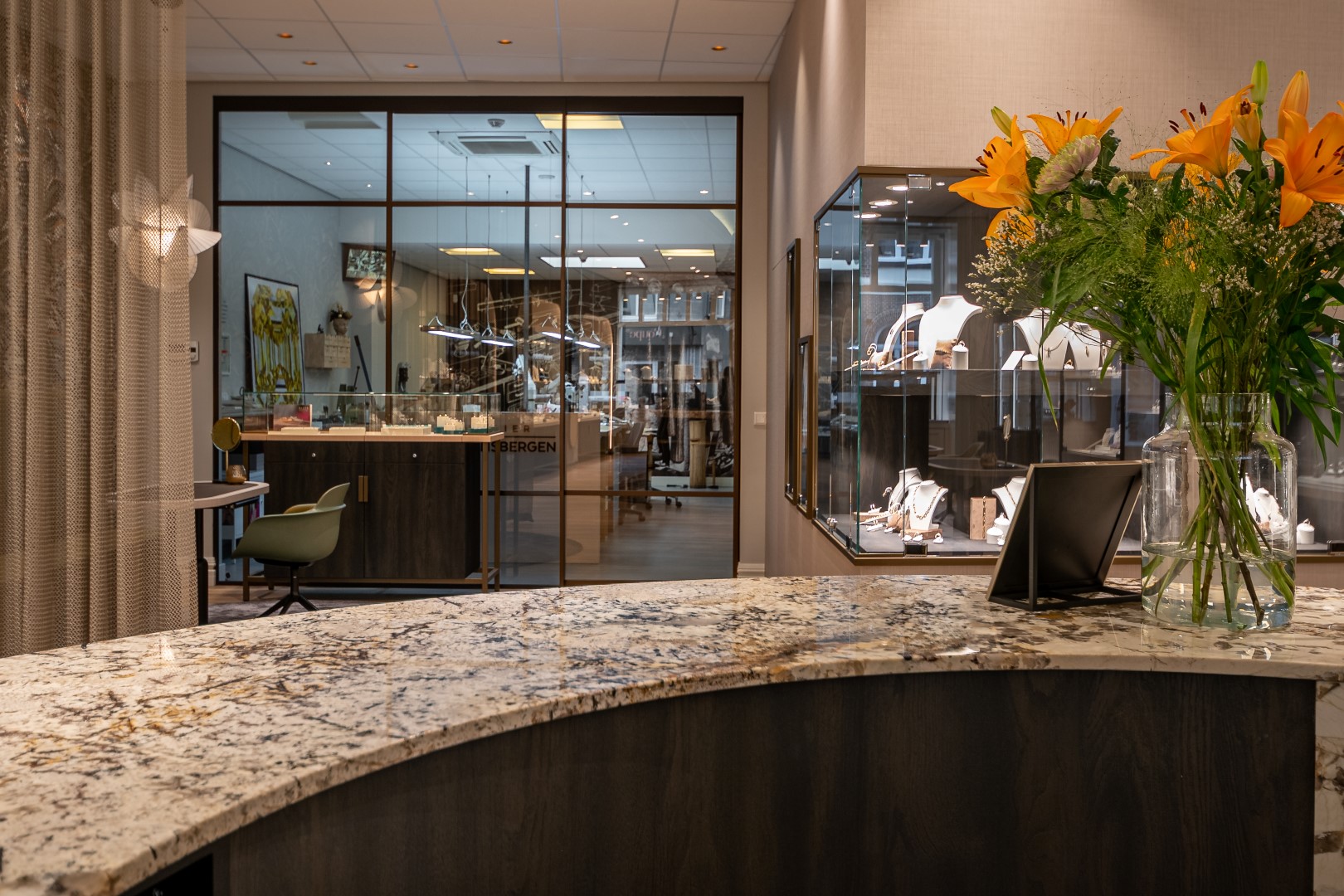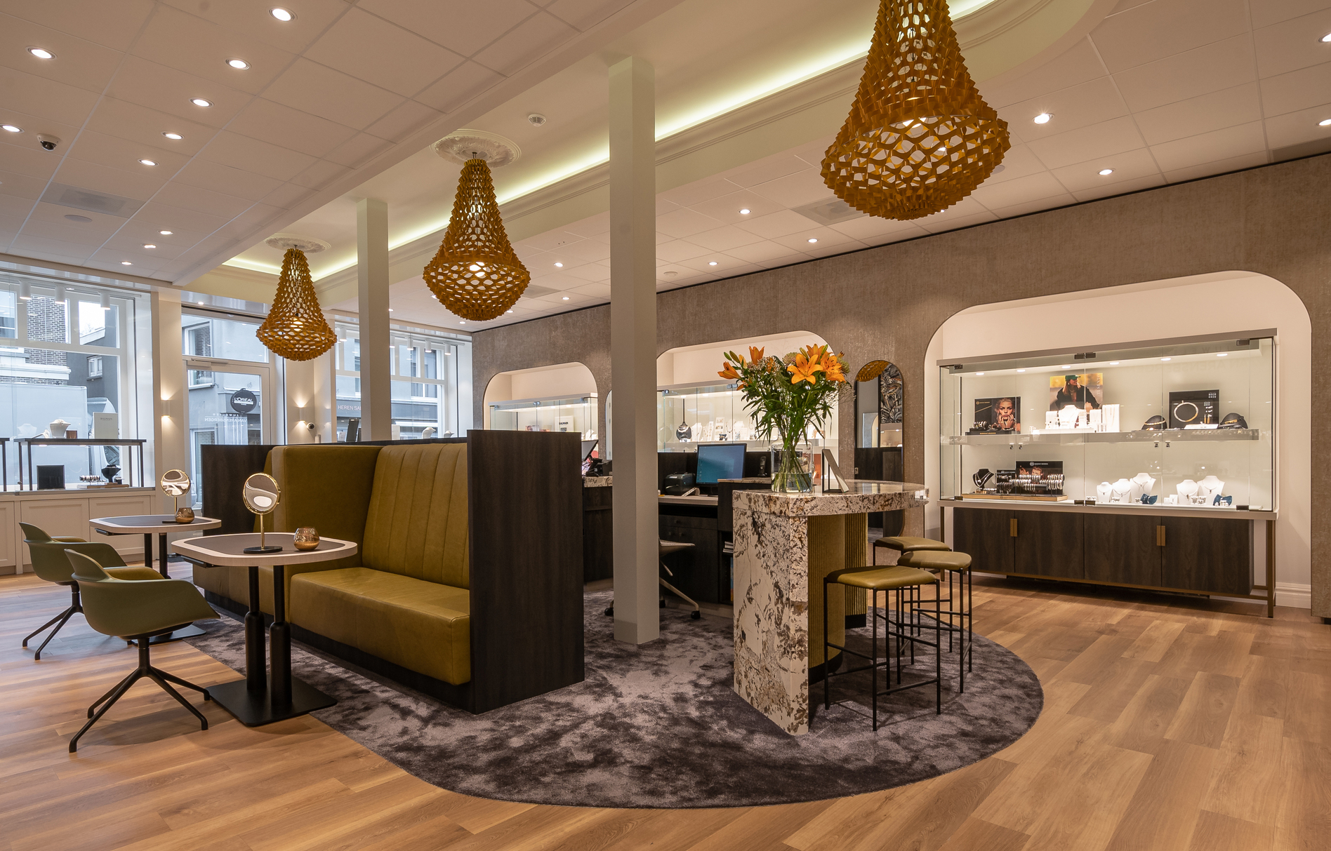 Tjeerd und Kim haben im Zentrum von Boxmeer in Brabant (NL) ein neues Juweliergeschäft eröffnet. Kim sagt: „Wir haben den Laden im September 2022 übernommen.“ Wir begannen mit dem bestehenden Interieur, wollten aber dennoch unsere eigene Atmosphäre schaffen. Das Erscheinungsbild des Interieurs des Juweliers muss zu unserem Sortiment passen. Das finden wir sehr wichtig.“