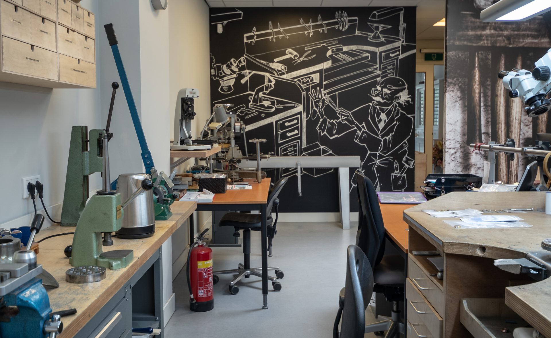 Nach einem Shop-Scan erstellten die Innenarchitekten von WSB einen Entwurf. Tjeerd und Kim wollten ein attraktives Geschäft, in dem die Werkstatt offen wirken sollte. Das war der Hauptwunsch. Dadurch können Sie sich vom Markt abheben und Handwerkskunst und Handwerkskunst in den Vordergrund stellen. Dem WSB-Team obliegt die Konstruktion, Berechnung, Arbeitsvorbereitung, Produktion und Montage.