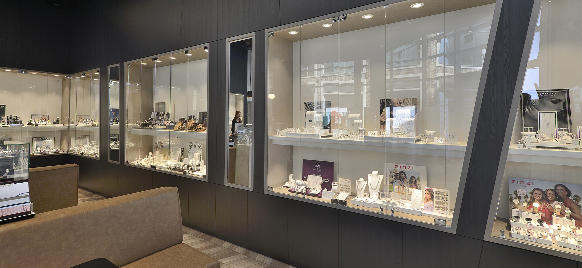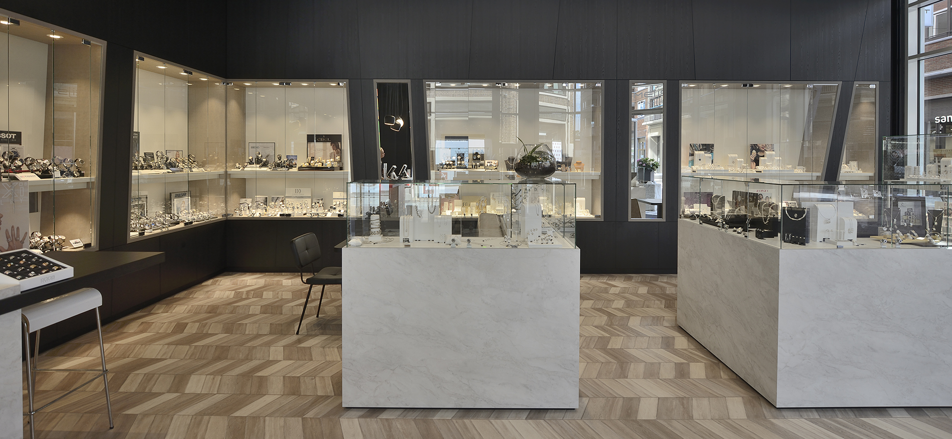 Eline von Juwelier Meijst aus Vleuterweide hat Mitte 2018 unter Mitwirkung von WSB die zweite Filiale des Geschäfts in De Meern eröffnet. Eline, wir gratulieren ganz herzlich! Die Gestaltung des Ladens zeichnet sich durch diagonale LInien, dunkle Farben und luxuriöse Materialien aus.