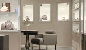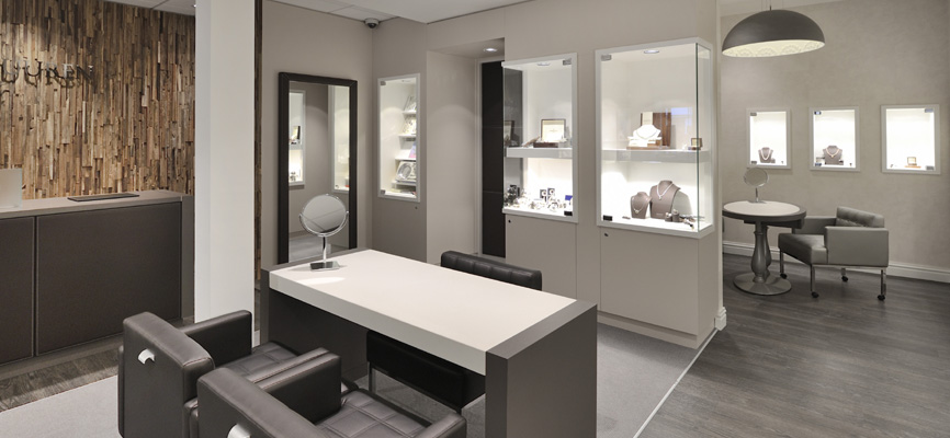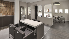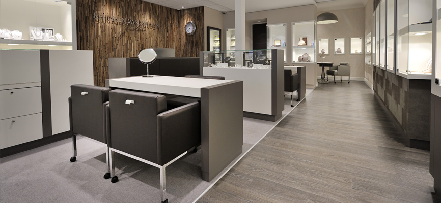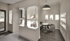 Eigenständige Atmosphäre>> Referenzen für Erfolg versprechende Ladenbaulösungen, auch für kleine und mittelständische Juweliergeschäfte, kann WSB vielfach aufführen. So hat der niederländische Ladenbauer jüngst Reyersen von Buuren in Utrecht zu modernen Erscheinungsbildern verholfen. Die neu gestalteten Geschäfte kommen nicht nur bei Stammkunden sehr gut an sondern auch bei jungen Neukunden. Auf dem deutschen Markt ist WSB dank Deutsch sprechender Kundenberater ebenfalls schon länger aktiv.