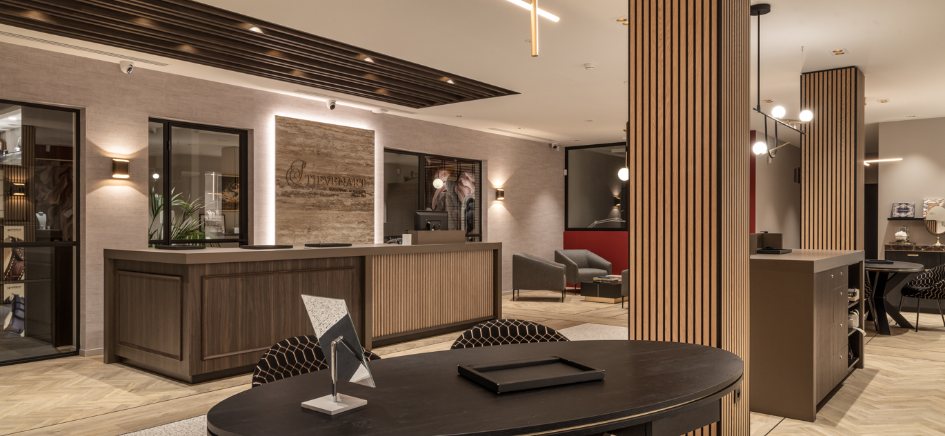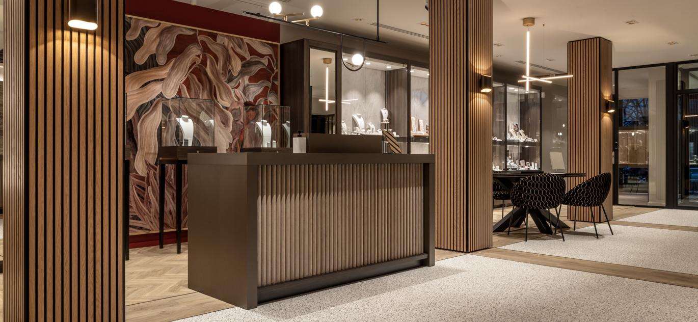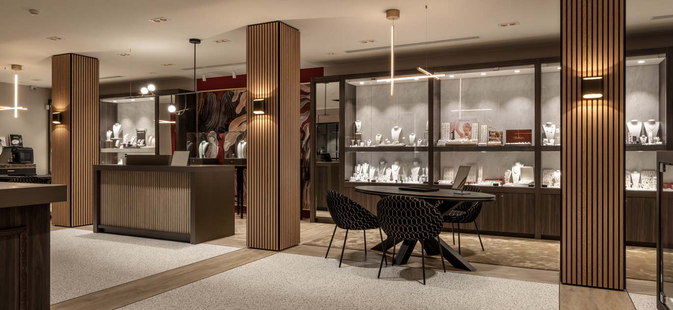 Renovierungspläne? Planen Sie ein unverbindliches Brainstorming mit unseren Innenarchitekten. WSB arbeitet häufig für Kunden im französischsprachigen, niederländischsprachigen und deutschsprachigen Raum. Weitere Ladendesigns von Juwelieren finden Sie auf unserer Website.