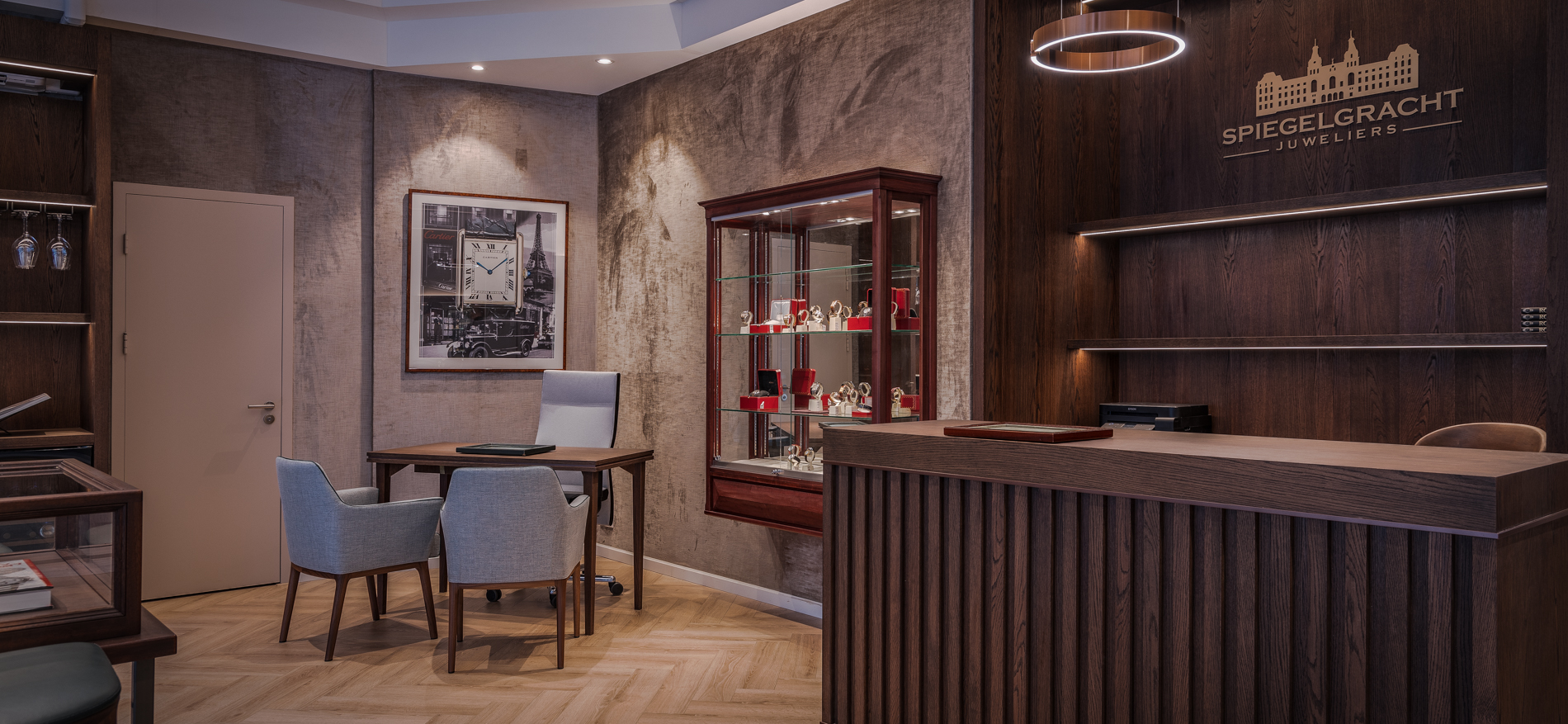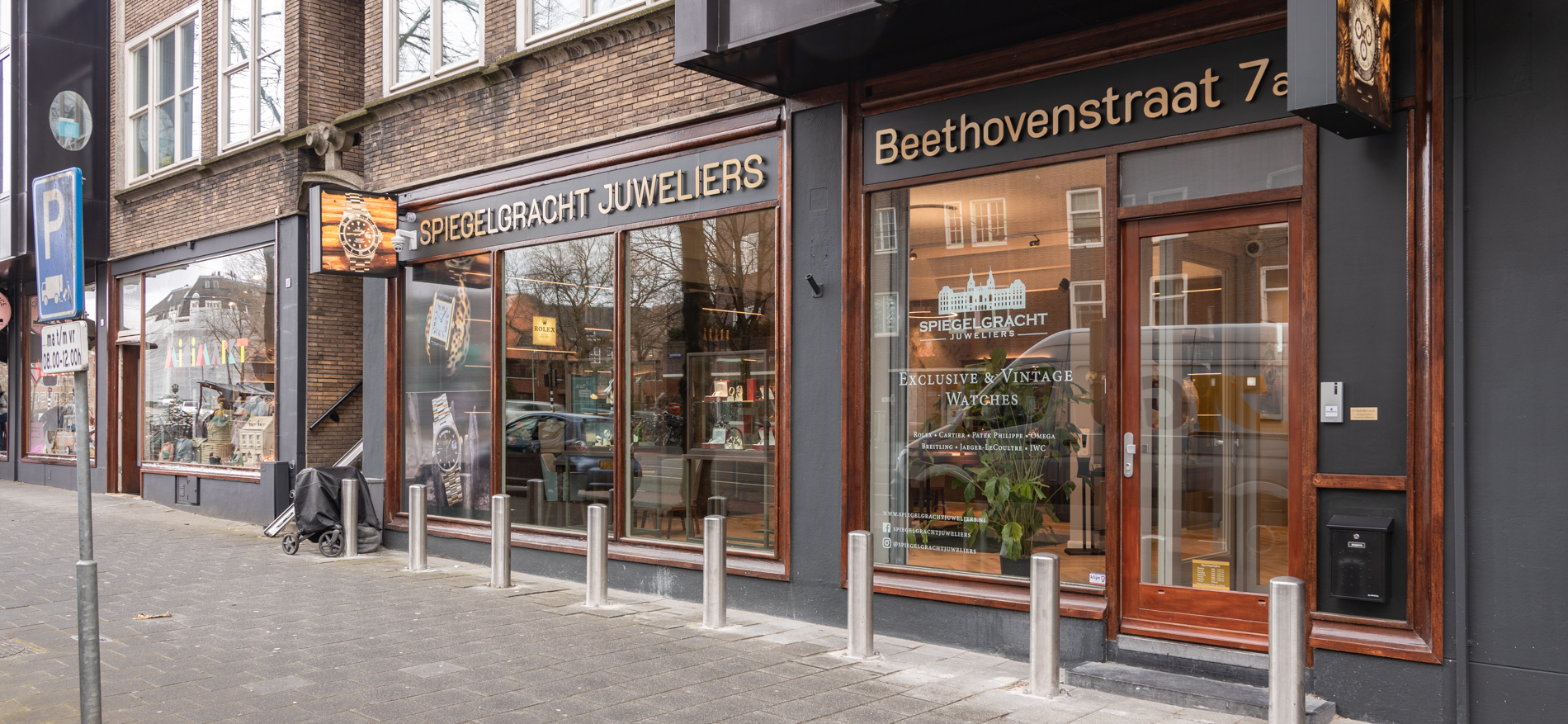 Spiegelgracht Juweliere ist auf Top-Uhren und Vintage-Uhren in Amsterdam spezialisiert. Der ehemalige Standort an der Spiegelgracht entsprach nicht mehr den Anforderungen der Barrierefreiheit. Spiegelgracht Juweliere genießt landesweite Bekanntheit, unter anderem aufgrund seiner Werbekampagnen. Die Uhrenkollektion umfasst einzigartige Top-Uhren und Vintage-Uhren berühmter Uhrenmarken wie Rolex, Cartier, Omega, Breitling, IWC und Patek Philippe. Alle von Spiegelgracht verkauften gebrauchten Markenuhren und Vintage-Uhren wurden gewartet und werden mit einer 2-Jahres-Garantie verkauft. Der neue Standort befindet sich in einem wunderschönen Gebäude in der Beethovenstraat im Amsterdam Süden.