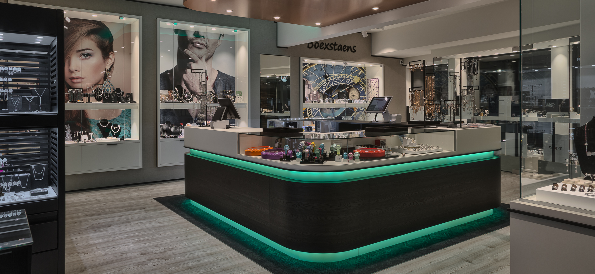 Im Herbst 2017 entschloss sich Familie Boexstaens aus Heist op den Berg ihr Schmuckgeschäft umzubauen. Von vorne herein war klar, es soll kein Laden wie all die Anderen werden. Der Laden ist positioniert in der Stadtmitte auf einer Kreuzung!