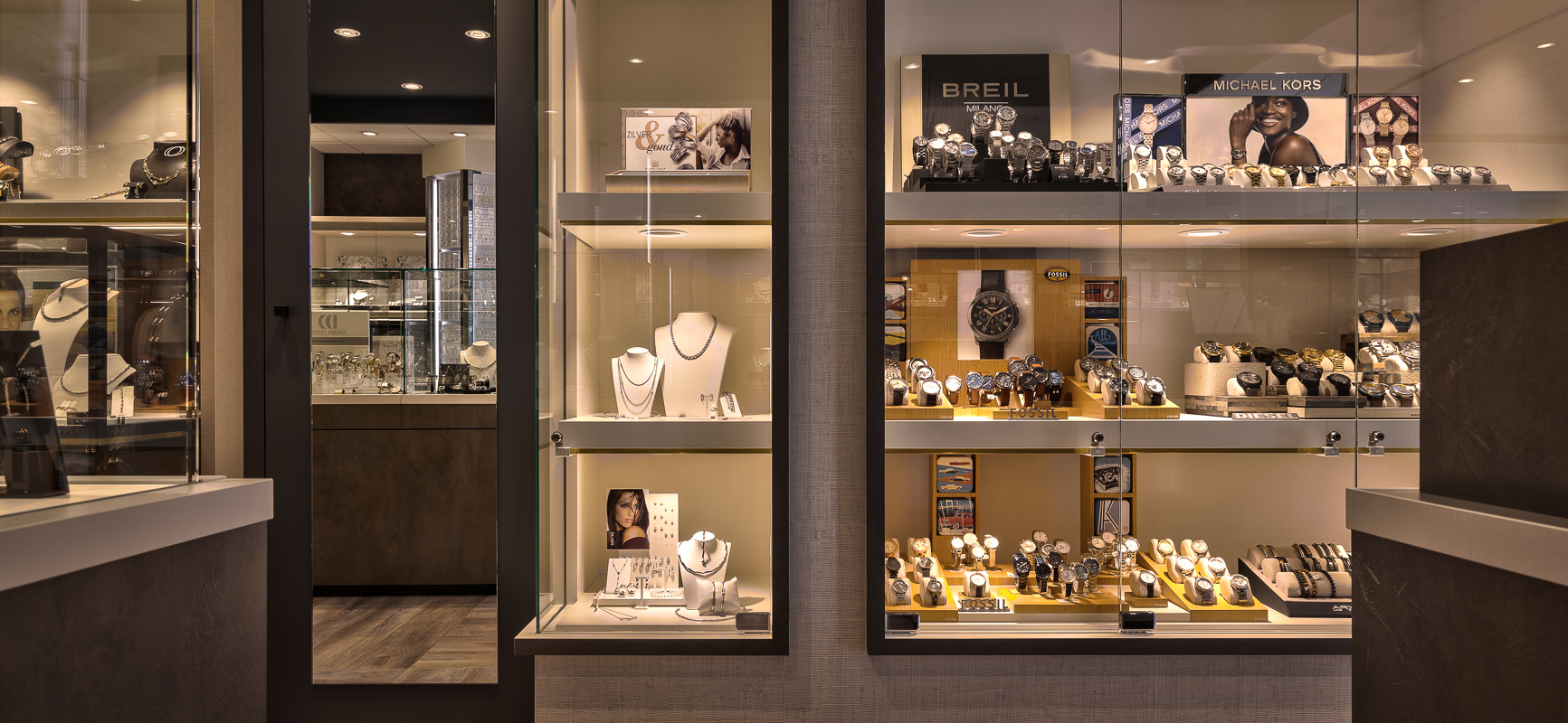 Vitrinen im Innenkonzept für das Juweliergeschäft Zuyver.