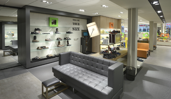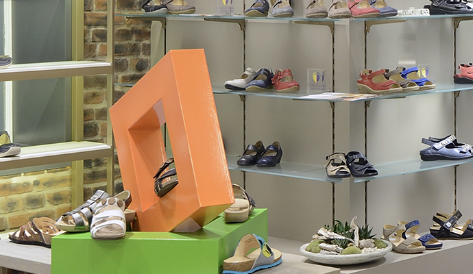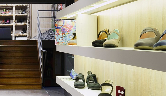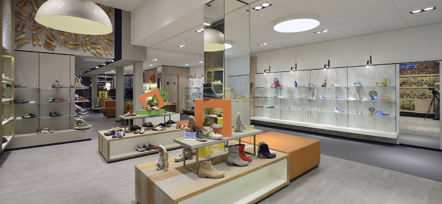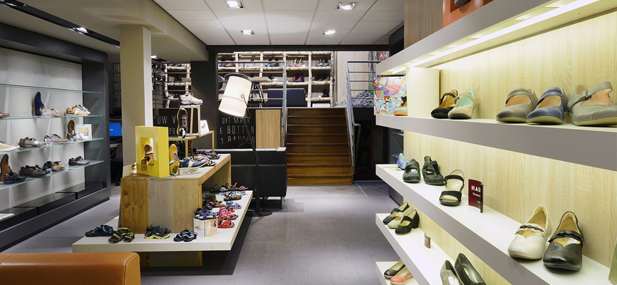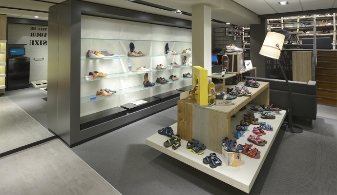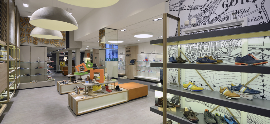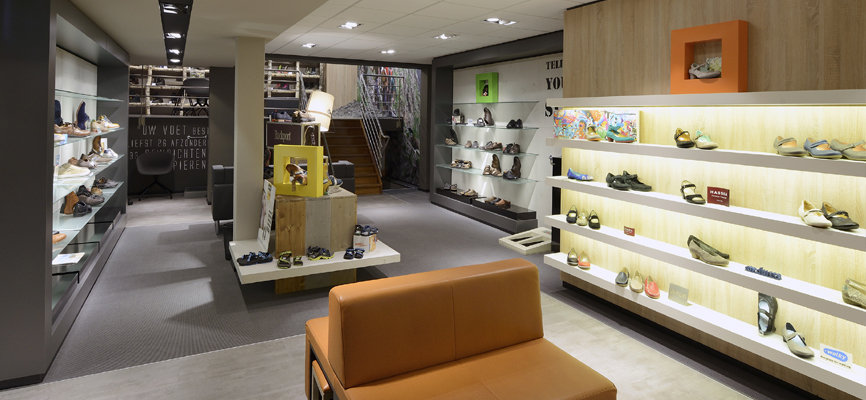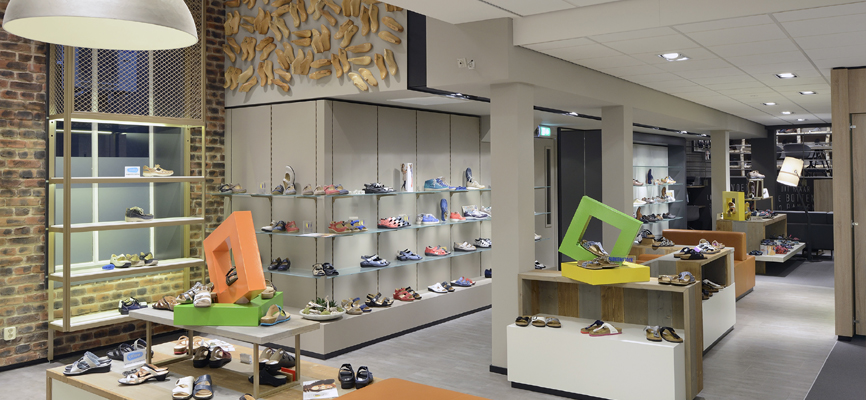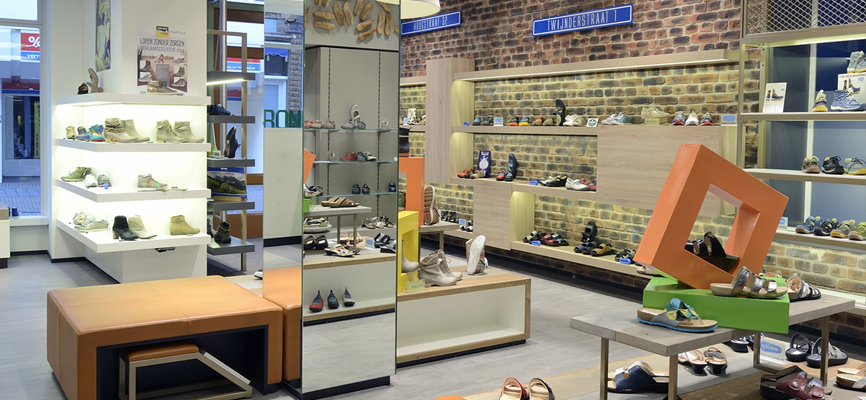 WSB: Jede kreative Aufgabe beginnt mit folgenden Fragen an den Inhaber eines Geschäfts: Wer sind Sie und was wollen Sie erreichen? Was ist Ihre DNA? Wodurch unterscheiden Sie sich von anderen Wettbewerbern?« Aus diesen Antworten entwickelt das Team von WSB dann schließlich die Ideen, die die Auftraggeber zu mehr kommerziellem Erfolg führen sollen. »Unsere Ladenbaudesigner sind in Weltstädten wie New York, Paris, Berlin und London ständig unterwegs und lassen sich dort von besonders erfolgreichen Handelskonzepten inspirieren«. Auf diese Weise sind die WSB-Designer immer auf dem neuesten Stand des internationalen Ladenbaus. Die besondere Kompetenz hat auch mit der niederländischen Herkunft zu tun. Denn gerade in einem so dicht besiedeltem Land wie den Niederlanden ist es besonders wichtig, sich mit seinem Geschäft zu profilieren und von anderen Anbietern zu unterscheiden. ladenbau schuhe